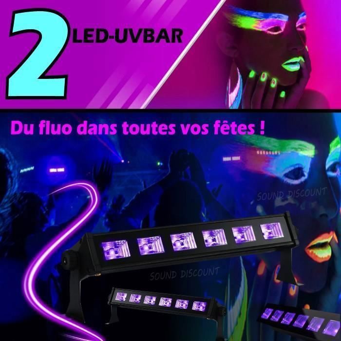 Lampe UV Lumière Noire PACK 2 Barres à LED UV 9 X 3W LUMIÈRE NOIRE J LIGHT - TV Son éclairage Club Intérieur Barre à LED véhicule 72w 5040 lumens Ballons latex 30 cm Fluo neon UV Coloris néon réagissant lumière noire... La lumière UV crée un effet surnaturel lorsque la lumière noire se reflète sur des tissus blancs ou sur des peintures corporelles- Nombre de LED 9x 3W UV LEDs- Alimentation 220-240VAC 50/60HzHz- Consommation 30W- Dimensions 51 x 5 x 6cm- Poids net 0., 75kg- Mode de fonctionnement - Switch ON/OFF- Angle du faisceau 60°- Utilisation en intérieur uniquement Spécial Déco Halloween Réglettes Barre Néon Lumière Noire 9x3WFLUO Black Light Mini Ledstrobe Led