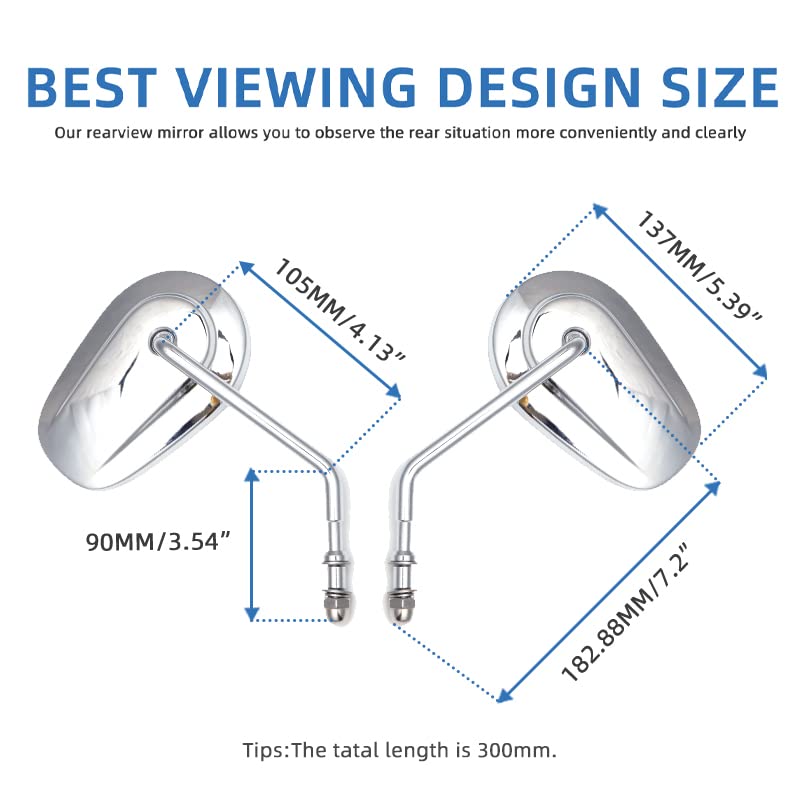 De plus, des accessoires de haute qualité assurent une fixation solide. Assistance technique : DREAMIZER fournit une assistance technique si vos rétroviseurs présentent des problèmes de compatibilité. Rétroviseurs Shinyo Aluminium chrome - Pièces Partie cycle sur La Bécanerie Compatibilité : Compatible avec la plupart des motos à filetage 8 mm à partir de 1982 (sauf les modèles V-Rod (VRSC) et XL1200X équipés de vis de... Vision plus large : La lentille en verre blanc transparent offre une vision horizontale plus claire. Rétroviseurs moto chrome ou noir golf club miror Matériau : Revêtement de surface lisse, forme de rétroviseur de moto et résistance à la rouille de haute qualité, pour une touche d'élégance à votre moto. Installation facile : Ce produit s'installe facilement au-dessus ou en dessous du guidon. Rétroviseurs Street Glide Dyna Rétroviseurs Chromés De 8 Mm Pour Moto Sportster à Longue Tige Compatibles Avec Road King Street Electra Glide Road Glide Dyna Softail 1982-2020 Rétroviseurs Verre Large Vision Compatibilité : Compatible avec la plupart des motos à filetage 8 mm à partir de 1982 (sauf les modèles V-Rod (VRSC) et XL1200X équipés de vis de rétroviseur à filetage impérial et M10). Une vis de 8 mm peut être installée dans le sens des aiguilles d'une montre. Ne convient pas aux modèles de 10 mm.