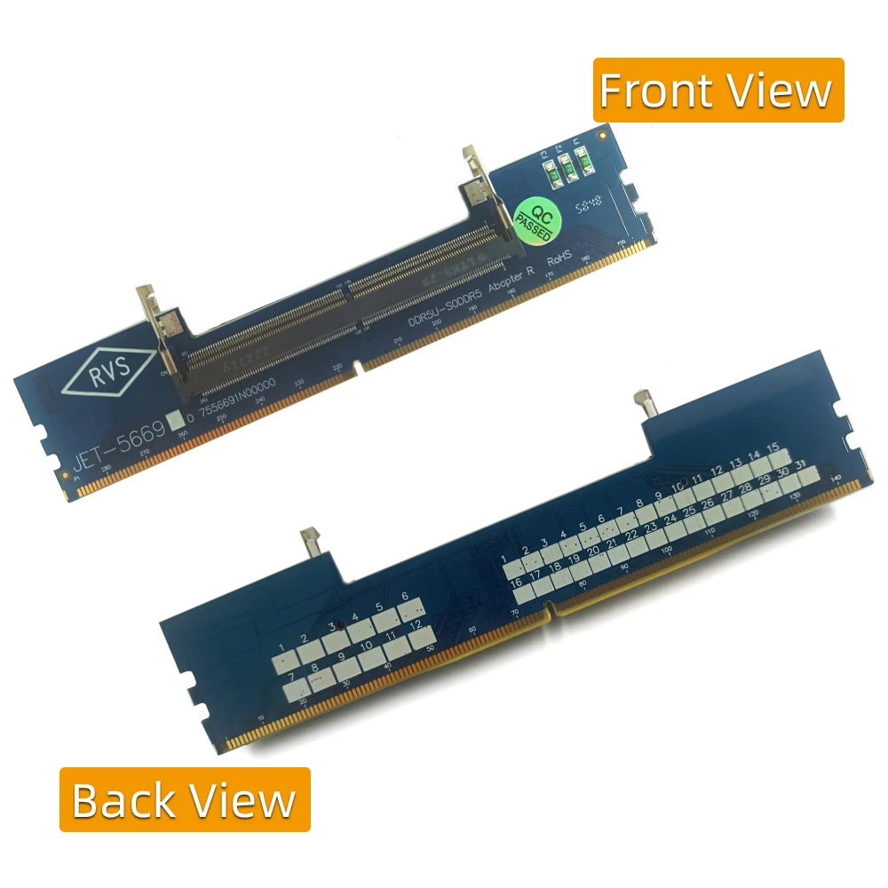 Kingston ValueRAM 64GB 6400MT/s DDR5 Non-ECC CL52 CSODIMM 2Rx8 Mémoire NOUVEAU DDR4 288 Broches DIMM Adaptateur Carte Mémoire Testeur Carte De Protection Carte D Adaptateur SO-DIMM DDR5 Mettez à niveau votre PC sans effort avec l'adaptateur SO DDR5 vers DDR5 DIMM pour une haute fréquence et une compatibilité parfaite avec les PC modernes. Caractéristiques : Mettez à niveau votre PC sans effort avec l'adaptateur SO DDR5 vers DDR5 DIMM pour une haute fréquence et une compatibilité parfaite avec les PC modernes. Pour les passionnés de technologie et les professionnels, améliore les capacités de mémoire de leurs ordinateurs sans remplacer le matériel existant. Carte adaptateur RAM DDR5 pour ordinateur portable vers SO DDR5 U-DIMM pour ordinateur de bureau, Marque merkloos Neuf Offre Cashback exceptionnelle Parfait pour les bureaux à domicile, les configurations de jeu ou les stations de travail professionnelles où le traitement rapide des données est essentiel. Pour tester un module SO-DDR5, l'utilisateur doit le brancher à la machine testée (carte mère ou banc de test SO-DDR5, par exemple). Seul le contenu mentionné ci-dessus est inclus. Les autres produits ne sont pas fournis Contenu : 1 adaptateur d'extension SO DDR5 vers DDR5 DIMM Cet adaptateur dispose d'une construction solide, assurant une durabilité et une connexion fiable pour tous vos besoins informatiques.