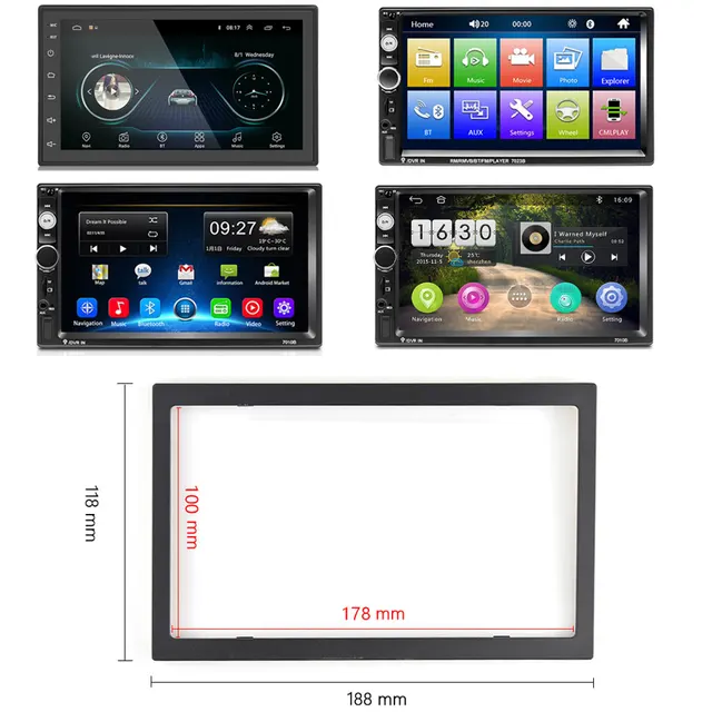 Compatible: Convient à VW Passat B5/mMK5 2001-2005, VW Jetta 1998-2005, VW Bora/Polo/MK3/MK4 2000-2009, VW Golf MK4 1997-2003, VW Citi 2004-2009, VW Golf 2004-2009, VW Chico 2004 -2009, Volkswagen Sharan 2000-2009, Volkswagen Transporter T4/T5 1998-2009., Qualite Premium: Le cadre d'autoradio est fabriqué en fer de haute qualité combiné à un cadre en plastique durable, solide et résistant à la déformation, durable et résistant à l'usure. Facile à Utiliser: Attachez la plaque de montage à la radio double DIN, fixez-la avec les vis, puis placez le cadre 2din sur le dessus et soulevez tous les clips à l'aide d'une clé métallique pour le fixer solidement au panneau avant. Largement Utilisé: Le fascia 2Din pour autoradio est largement utilisé pour l'installation d'autoradio et de lecteur DVD, ce qui permet de résoudre la plupart des problèmes de montage ou de modification de panneau rencontrés par les propriétaires de voitures. Cadre Autoradio Universel 2 DIN DIN - Kit Montage Cadre De Radio Adaptateur Autoradio 2 DIN Compatibilite: Fer et plastique cadre de montage d'autoradio convient pour Volkswagen Passat, Jetta, Volkswagen Bora/Polo, Golf MK4 , Volkswagen Citi, Volkswagen Golf, Volkswagen Transporter et ainsi de suite. Kit de cadre d'autoradio Android 2 Din, pour VW Volkswagen Skoda Seat, unité principale stéréo universelle, montage sur panneau de tableau de bord, Fascia Accessoire Installation Autoradio Universel Montage Autoradio 2 Din Cage Métal Pour Autoradio 2 DIN - Cadre Universelle De Remplacement Hauteur 103 Mm Support Installation Auto Radio Cadre 2 DIN Universel Avec Accessoires Ce lecteur DVD de voiture et navigation GPS universel 2DIN double DIN à cadre métallique est la solution parfaite pour toute installation d'autoradio. Le cadre facile à installer s'intègre dans n'importe voiture avec une double fente DIN et est compatible avec presque toutes les lecteurs DVD de voiture et les systèmes de...
