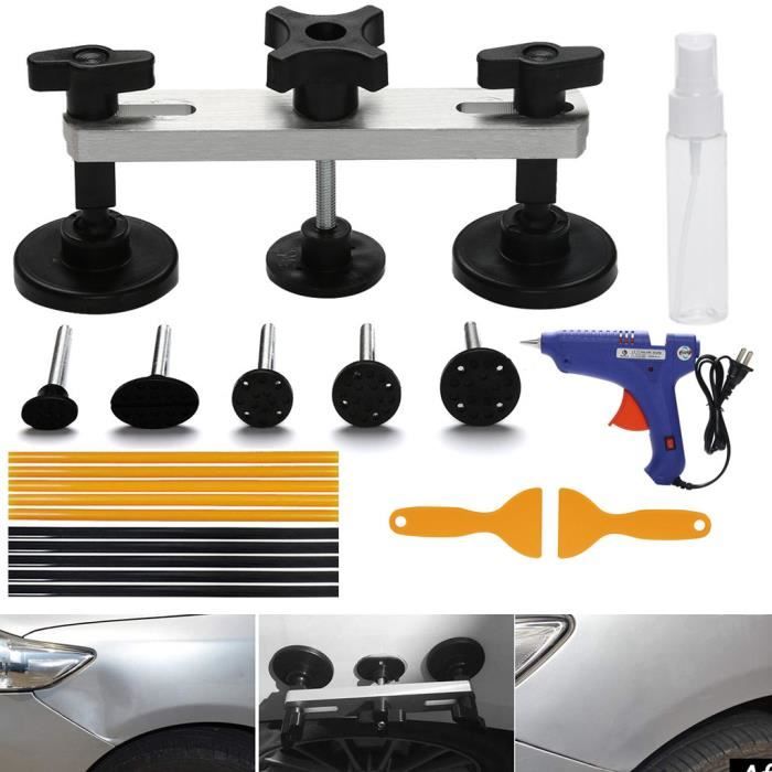 Outil de Débosselage Automatique avec Ventouse Débosselage de Ventouse Débosselage Voiture Portière Outil De Débosselage DentFix Kit De Réparation De Bosses Outil Tôle Frigo Moto 【Applications polyvalentes】: Le kit de réparation de dents est multifonctionnel et peut être utilisé pour la réparation des bosses de voiture, des réparations de portières, des dommages causés par la grêle et d'autres bosses. Description du produit Kit de réparation de bosses de voiture, Fonctionnalités : 1., Matériaux de haute qualité, utilisation durable., 2., Utile pour réparer les bosses de la voiture sans endommager les surfaces peintes., 3., Largement utilisé pour le traitement de la tôle des voitures, réfrigérateurs, motos, machines à laver, etc. 【Matériaux fiables】 : grâce aux matériaux ABS de haute qualité et (pas tous les métaux), le kit de réparation de dents de voiture peut être utilisé de manière durable et fiable pendant longtemps. Le kit de débosselage sans peinture est l'outil idéal pour éliminer les bosses indésirables de votre voiture de manière rapide et efficace, sans nécessiter de travaux de peinture coûteux. Conçu pour une utilisation simple et pratique, ce kit convient à tous les niveaux d'expérience 【Ne gâchez pas la peinture】: vous offre beaucoup de commodités pour réparer les bosses de voiture. Extracteur de bosses de voiture, Lot de 2 Extracteur carrosserie outil... L'outil Dent Lifter Puller aide à éliminer les bosses de voiture sans endommager les surfaces de peinture d'origine de la voiture. Caractéristiques techniques : Nom : Dent Removal Tool Kit Matériau : alliage ABS + (pas tout métal) Couleur : noir Doré Dimensions du colis : environ 18 x 13 x 2 cm Contenu : 1 outil de débosselage 18 joints de réparation de bosses Remarques : 1., En raison des effets de lumière et de l'angle de prise de vue, il y a une différence de couleur dans le produit, veuillez comprendre., 2., En raison de la mesure manuelle, il y a une tolérance dans la taille du produit., 3., Le paquet ne contient pas de bâtons de colle ou de machine à colle.