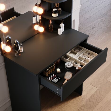 Table Maquillage Bois Blanc Coiffeuse Avec Miroir LED - Table Coiffeuse Avec Miroir éclairé Coiffeuse Avec Miroir Rond Et Tabouret, Coiffeuse Avec Miroir LED à Luminosité Réglable,Table De Maquillage Avec 4 Tiroirs De Rangement, Meuble Chambre Moderne A,70CM Chaise Coiffeuse Lcni130003-4 Taille de l'ordinateur de bureau : 80 x 40 cm. La coque de l'ampoule en acrylique a une meilleure transmission de la lumière, rendant la lumière plus lumineuse. Le bureau a une capacité de charge de 15 kg et vous pouvez toujours placer de petits objets tels que des parfums, des cosmétiques et des produits de soins de la peau sur le bureau. Ampoules LED réglables ] : Cette coiffeuse est éclairée par 12 ampoules LED Hollywood et offre 3 méthodes d'éclairage (lumière chaude, lumière naturelle, lumière blanche) et 10 luminosités d'ampoules parmi lesquelles choisir Les miroirs haute résolution offrent des reflets plus clairs pour vous aider à obtenir le look parfait. Vous découvrirez une expérience super de maquillage avec notre coiffeuse élégante. Le miroir limpide reflète mieux vous-même. Si maquiller, soigner et coiffer sont dans votre vie quotidienne, n'hésitéz pas à la choisir regardant-vous avec une nouvelle perspective, activant votre belle et inspiration Taille du tabouret : 40 x 26 x 42 cm. [ Ampoules LED réglables ] : Cette coiffeuse est éclairée par 12 ampoules LED Hollywood et offre 3 méthodes d'éclairage (lumière chaude, lumière naturelle, lumière blanche) et 10 luminosités d'ampoules parmi lesquelles choisir.