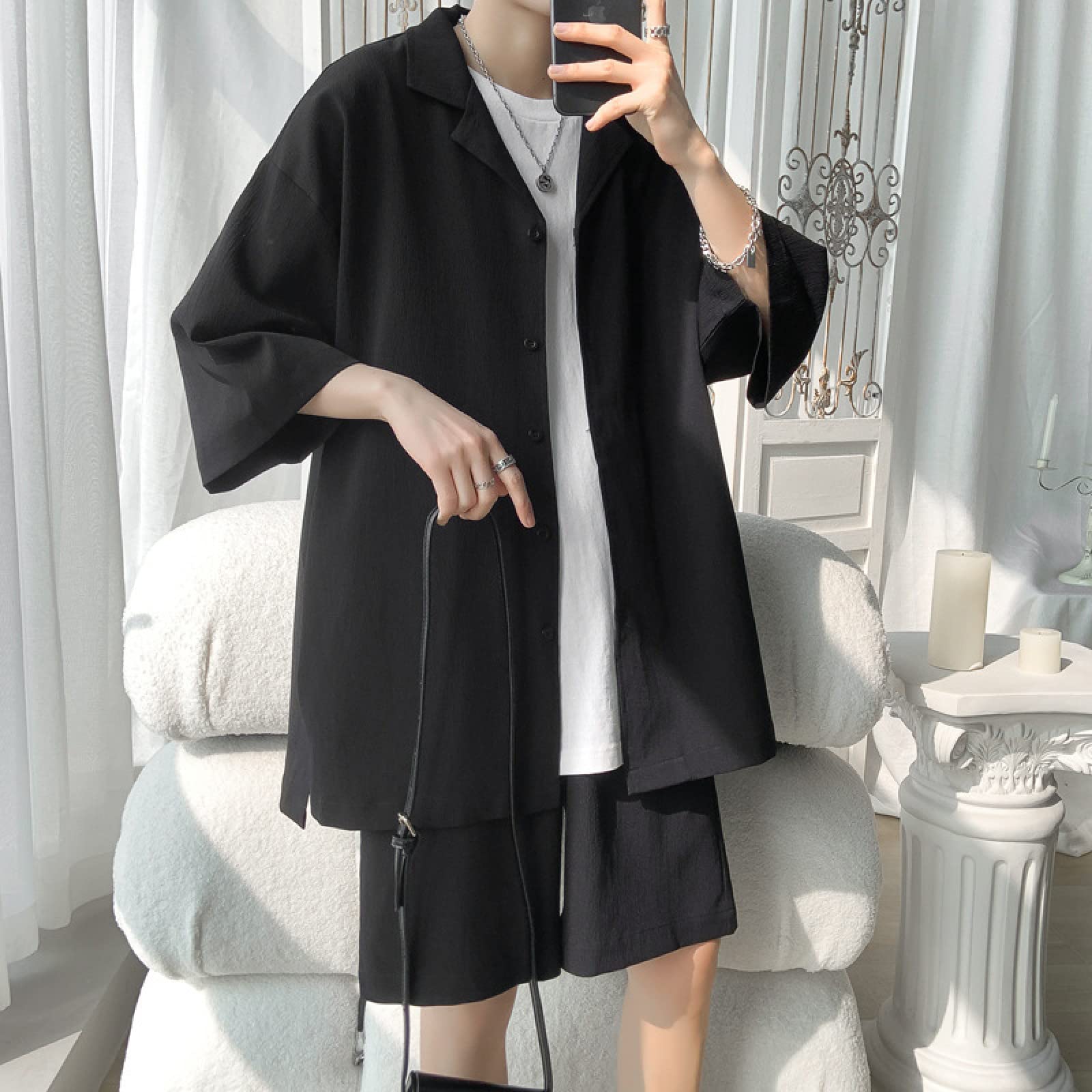 Ensemble * pièces pour homme, comprenant un tenue d'été décontractée à rayures, * d'une chemise à col * à manches courtes et d'un pantalon à cordon de serrage La construction du vêtement permet une circulation d'air efficace, évitant toute sensation d'inconfort pendant les périodes d'utilisation prolongée. Ensemble Homme été Ensemble Homme Ete Chic 2 Pièces Avec Chemise Manches Courtes Et Ensemble Chemise Fluide Homme Ces vêtements pour homme allie fonctionnalité sportive et élégance décontractée pour un usage quotidien durant les saisons fraîches. Design : Style sportif et coupe contemporaine alliant l'aspect fonctionnel d'un vêtement technique à une esthétique urbaine pour un usage polyvalent Occasions : Adapté pour les sorties urbaines, les activités sportives modérées, les loisirs en extérieur et les situations quotidiennes nécessitant mobilité et protection thermique Homme 2 Pièces Ensemble chemises Chemisette Chemise d'été Ensembles assortis Chemise de plage Chemise boutonnée Plein Vacances Casual Noir Blanche bleu marine Bleu manche longue Col Printemps été Ensemble chemise et pantalon de vacances pour homme - Ensemble Le tissu sélectionné offrant une respirabilité et une régulation thermique qui offrant un port agréable lors des activités variées. Matériau : Tissu offrant une respirabilité et une chaleur adaptées aux saisons fraîches, maintenant une régulation thermique pendant les activités quotidiennes et les sorties extérieures La coupe généreuse et la conception étudiée offrent une liberté de mouvement tout en maintenant une silhouette moderne et soignée.