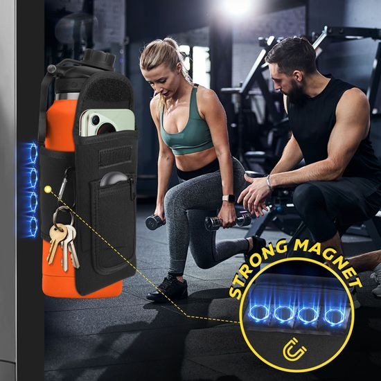 【Superior Quality】Ces accessoires de gym sont en fibre de polyester, durables et résistants, ne se déforment pas facilement, suffisamment durables pour protéger votre bouteille d'eau des rayures, adaptés à un usage répété pour un entraînement quotidien et de haute intensité. Mesure manuelle, la taille présente une légère erreur. 【Utilisation multifonctionnelle】Cet accessoire de gym a plusieurs compartiments de rangement internes pour les téléphones portables, les écouteurs, les clés et les pièces de monnaie, le sac de gym magnétique est livré avec un mousqueton pour accrocher les clés, ce qui fait de votre porte-sac de gym un petit assistant intelligent pendant l'entraînement. Sac de Gym magnétique, Sac de Sport de Grande capacité, Sac 【Très largement utilisé】Le sac à gourde magnétique est facile à plier et à transporter, adapté au fitness, à la randonnée, à la navette de bureau, le design du porte-bouteille d'eau de la salle de sport combine praticité et mode, c'est le meilleur compagnon pour votre entraînement quotidien. Sac de gym magnétique pour le sport, bouteille d'eau, sac à bandoulière, sac de transport avec poche pour téléphone portable, bandoulière réglable et poche avant à fermeture éclair pour les voyages, la course, le cyclisme Couleur : noir. Champ d'application : hommes et femmes Attention Poche Bouteille Sport APOMOONS Sac De Gym Magnétique Pour Bouteille De Sport, Sac Sac Fitness Aimanté Sac de Sport magnétique, Porte-Bouteille d'eau, Accessoires de Sport, Support de téléphone magnétique, pour Bouteilles de 1-1,5 L ... -25€ dès 249€ d'achat, code...