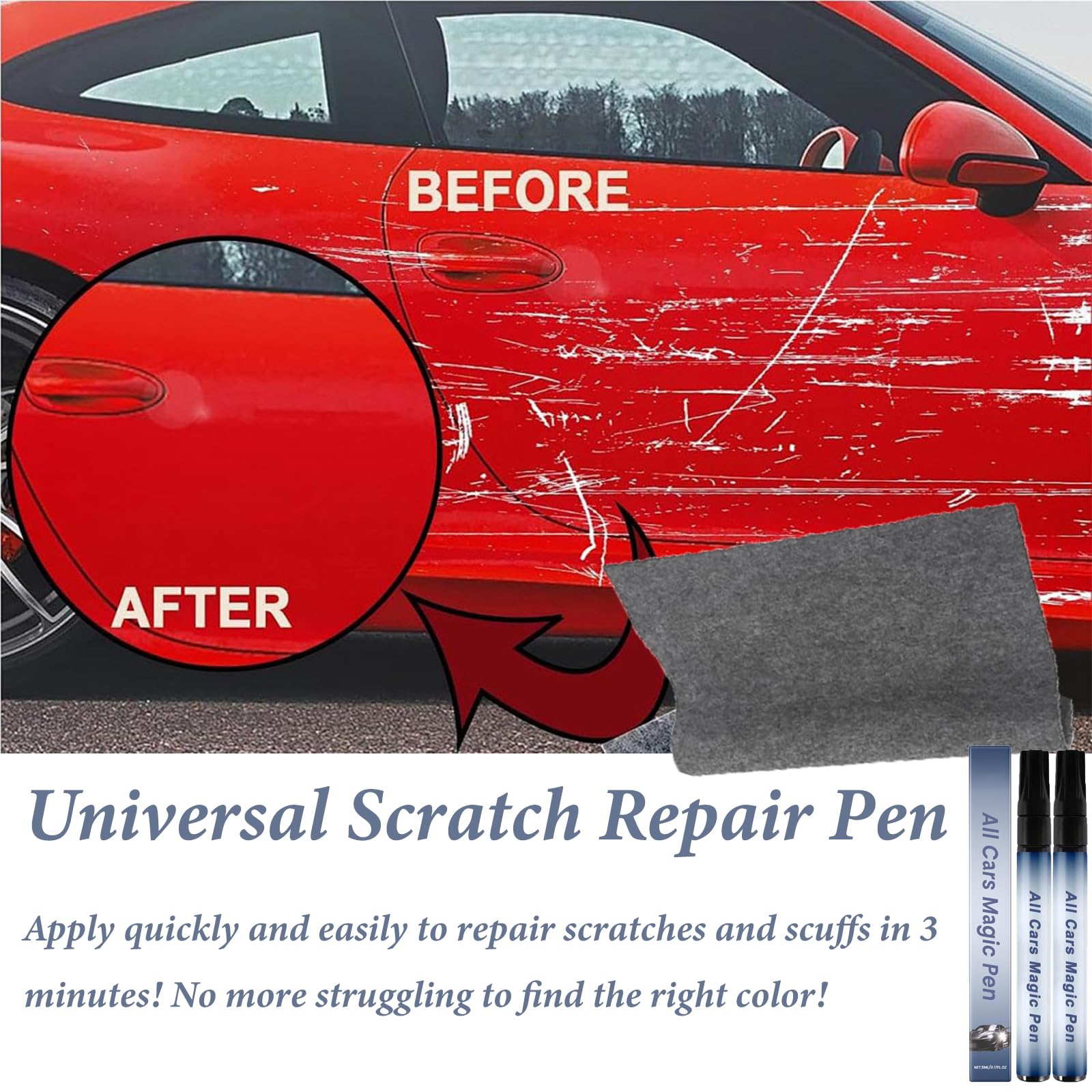 Stylo Efface Rayures,1 Pièce Stylo Applicateur de Couche Produit Clim Voiture Stylo Retouche Peinture, Stylo Réparation Des Rayures Auto De Peinture Retouche Peinture Auto La peinture réparée sera plus naturelle Design Spécial :Carrosserie Voiture Stylo Anti Rayure de rayures contient une partie coulissante qui peut déplacer le pigment dans la bouteille lorsque le stylo se déplace vers le haut et vers le bas pour mélanger uniformément le pigment C'est un produit essentiel pour les amateurs de voiture et les conducteurs ️ Pour toutes les rayures : Réparez rapidement et facilement toutes les rayures, même profondes, sans frais élevés de carrossier. Avec notre stylo anti rayure, la finition est impeccable, et votre voiture retrouve son apparence d'origine en un rien de temps Élimination des Rayures : Stylo applicateur de Couche Transparente peut être utilisé pour les toits, les portes de voiture, les capots et même les pare-chocs. Comparez et évaluez les 10 meilleurs Stylo Efface Rayures pour 2025 sur . Découvrez les options les mieux notées avec des analyses détaillées pour vous aider à faire le meilleur choix Longue Durée de Vie : Stylo magique pour rayures de voiture après le polissage à la lumière, la peinture de la voiture devient plus lumineuse. Il a un fonctionnement confortable qu'il y a deux coups dans une tête