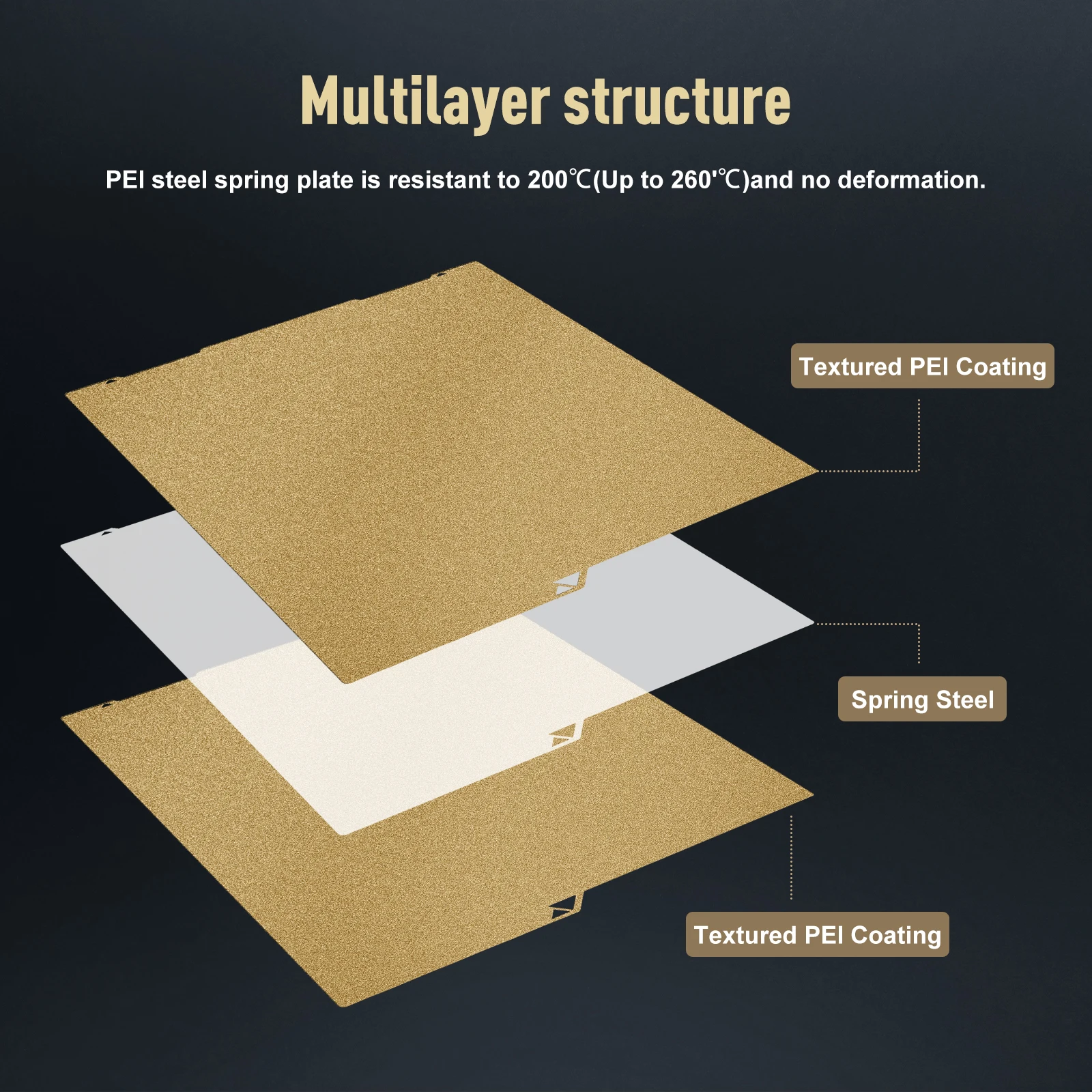 Ne retirez pas les modèles tant que la plaque est encore chaude, car cela pourrait endommager la structure de la surface. Plaque de construction pour Anycubic Kobra3 Max, 430x430mm JAKE Plaque d'Impression PET/PEI Crystal - Jake France Compatibilité du filament : conçu pour une performance optimale avec PLA (60-65 °C), PETG (70-90 °C), ABS (90-100 °C), TPU (20-40 °C, adhérence réduite recommandée). Plaque en acier à ressort épaissi : rigidité améliorée pour une excellente planéité, haute résistance à la déformation même en cas de retrait fréquent, idéal pour l'impression grand format et une utilisation intensive. Plaque en acier à ressort épaissi : rigidité améliorée pour une excellente planéité, haute résistance à la déformation même en cas de retrait fréquent, idéal pour l'impression grand format et une utilisation intensive La surface structurée PEI build plate minimise considérablement la déformation sur tous les filaments courants et offre des résultats exceptionnels lors d'une impression grand format. Plaque d'impression Kobra 3 Max Textured PEI - Fond amélioré : la structure mate crée une finition mate de qualité supérieure et améliore l'apparence de vos impressions - Idéal pour les projets axés sur le design où l'aspect du fond est important. Plaque Impression Pei Anycubic Kobra 3 Max HzdaDeve Plaque De Construction PEI 430 X 430 - Double Face - En Acier à Ressort - Plateforme Flexible Imprimante 3d Anycubic