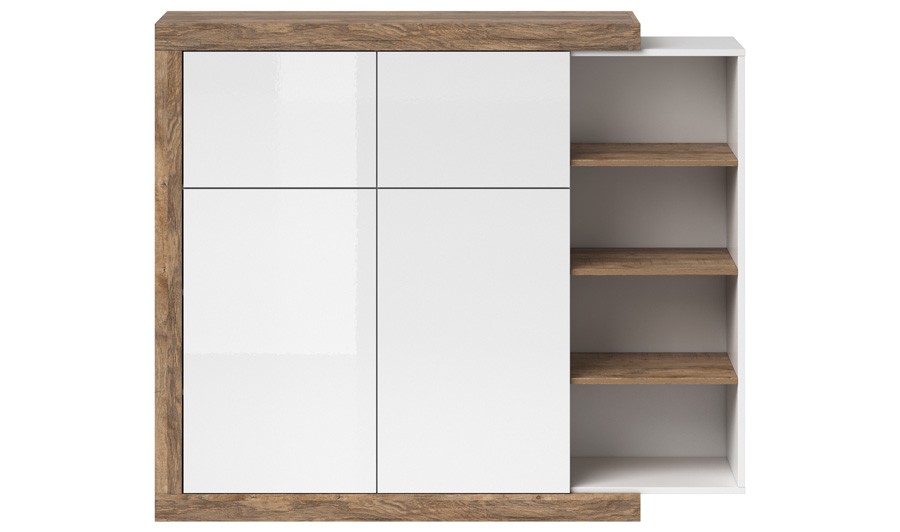 Vous pouvez ainsi utiliser votre nouveau meuble selon vos besoins et l'utiliser comme bibliothèque, vitrine ou lieu de rangement pour vos objets préférés. Le highboard dispose de 4 compartiments ouverts qui vous offrent suffisamment de place pour vos décorations, livres ou autres objets. Il est également possible de choisir un panneau de couleur différente. Dimensions et poids: Buffet haut (l x h x p) : 95 x 151,5 x 36 cm Portes (LxH) : 47,5 x 70,5 cm Compartiments intérieurs (LxHxP) : 46,5 x 34,5 x 31 cm Compartiments extérieurs (l x h x p) : 43 x 33,5 x 32,5 Avertissement De Sûreté Assemblez toujours l'armoire selon les instructions fournies. Il suffit d'une légère pression pour ouvrir les portes, sans que les poignées ne se trouvent sur le chemin. L'aspect sans poignée du buffet est particulièrement élégant. Dimensions (L x p x h) : Buffet haut (l x p x h) : 95 x 36 x 151,5 cm Portes (LxH... Buffet haut blanc laqué brillant Iceland Après l'assemblage, fixez l'armoire au mur à l'aide d'ancrages muraux appropriés pour éviter le basculement, surtout si l'armoire n'est pas utilisée comme buffet contre un mur. (LxHxP) : 95 x 151,5 x 36 cm Matériau : grâce à ses façades en MDF de haute qualité et à son corps en panneaux de particules mélaminés, ce highboard est agréablement léger, stable et facile à entretenir. Commandez dès maintenant et profitez de la polyvalence et de la qualité du Canto Highboard! Table A Manger Vladon Buffet Ben V3, Commode Avec 3 Portes Et 2 Tiroirs, Blanc Mat Commode Chambre Vladon Buffet Haut Canto, Meuble Haut avec 2 Portes et 8 Compartiments, Corps Blanc Mat, façades Blanc Brillant, Panneaux décoratifs chêne Nature (95 x 151,5 x 36 cm Dans l'ensemble, ce sideboard haut est un excellent choix pour tous ceux qui recherchent un meuble élégant et pratique - qualité Made in Germany. Le corps en panneau de particules est de couleur blanc mat et confère au buffet une allure moderne et stylée. Avec ses nombreuses fonctions et sa finition de haute qualité, il est parfaitement adapté à votre intérieur. Description du produit Le highboard Canto est un meuble de qualité supérieure, fabriqué à partir de matériaux soigneusement sélectionnés. Une autre particularité du highboard Canto est sa surface facile d'entretien sans poignées : Les portes sont dotées à la place d'un système push-to-open. Contenu de la livraison : le highboard, une notice illustrée détaillée et le matériel de montage nécessaire sont inclus.