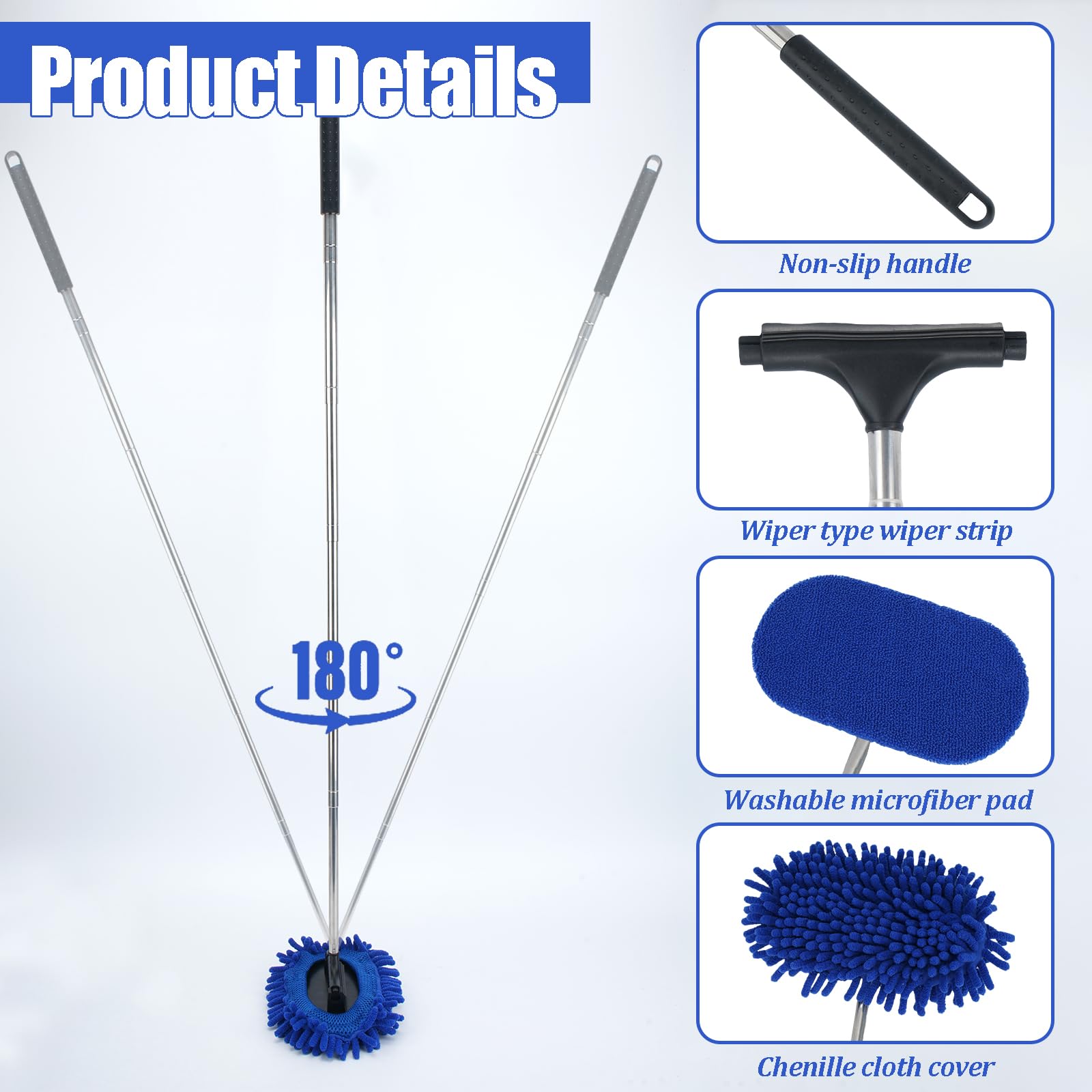 Avec ses brosses de lavage voiture et son balai lavage voiture, ce kit est l'allié idéal pour un nettoyage efficace et rapide. Avec sa raclette pour vitres à 180°, ce kit vous permettra de nettoyer efficacement les vitres de votre voiture, des camping-cars, des camions, et même des fenêtres de la maison. La raclette pour vitres à 180° de NIUQIGE est conçue pour offrir une expérience de nettoyage sans effort. Un outil pratique pour le nettoyage des vitres de voiture. Le nettoyeur de vitres de voiture est compact, petit et portable. Raclette Télescopique 180 Nettoyeur De Pare-brise Intérieur Pour Voiture, Avec 4 Tampons En Microfibre Et 1 Flacon Pulvérisateur, Nettoyeur De Pare-brise Avec Poignée Extensibl | Leroy Merlin Raclette 180° Télescopique En retirant la tête du manche, la tête télescopique restante peut être utilisée pour enlever l’eau du rétroviseur. Il prend peu de place et peut être rangé dans la boîte à gants de la voiture ou utilisé à tout moment et n’importe où pour un nettoyage efficace, permettant de gagner du temps. Que ce soit pour nettoyer les vitres de votre voiture après une longue route ou pour entretenir les fenêtres de votre domicile, ce kit de nettoyage vous garantit des résultats impeccables à chaque utilisation. La tête de nettoyage est pivotante à 180 degrés, la tête rotative permet une pression précise pour éliminer la saleté de la surface extérieure et nettoyer les endroits difficiles d’accès. Kit Lave Vitre Raclette & Mouilleur ErgoTec Le kit de nettoyage pour voiture de la marque NIUQIGE est l'outil essentiel pour garder votre véhicule impeccable à tout moment. Ne laissez plus la saleté ternir l'apparence de votre véhicule. La longueur de la poignée est ajustable (33 cm à 101 cm). Avec son manche extensible, la raclette pour vitres de NIUQIGE vous permet d'atteindre les endroits les plus difficiles d'accès sans effort. Que ce soit pour des petites ou grandes surfaces, pour des vitres ou des parois de douche, ou encore pour le pare-brise de votre voiture, la raclette John Cador répondra à tous vos besoins NIUQIGE Kit de Nettoyage Voiture - Raclette pour N'attendez plus pour offrir à votre voiture le soin qu'elle mérite grâce à ce kit de nettoyage de haute qualité.