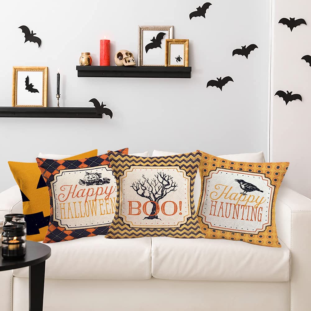 Housse de coussin d'Halloween en coton et lin avec motif de feuilles de Jack-O-Lanterne amusante – Housse de coussin rectangulaire pour maison Housses De Coussin D'Halloween Corbeau En Coton Et Lin Rétro Pour Halloween, Housse De Coussin Décorative Pour Canapé, Taille 45,7 X 45,7 Cm (corbeau Ambiance d'Halloween : transformez votre espace de vie avec nos housses de coussin d'Halloween, aux motifs classiques d'Halloween et de fantômes. Ces housses créent instantanément une atmosphère mystérieuse mais festive, parfaites pour infuser votre maison avec l'esprit de la saison Décoration d'intérieur polyvalente : tout en étant parfait pour Halloween, le motif fantôme ludique peut également être un accent amusant et fantaisiste tout au long de la saison d'automne