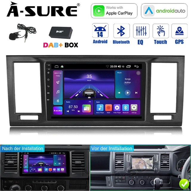 Alpine INE-F904T6 | Autoradio Navigationssystem für VW T5 und T6 mit , 1.089,00 Prise en charge de la navigation en ligne et hors ligne. L'écran s'active automatiquement lors de la marche arrière, garantissant ainsi une marche arrière plus sûre. Accédez aux fonctions principales (volume, changement de piste) sans quitter la route des yeux. Parfaitement compatible avec les commandes au volant de votre véhicule. Autoradio Android 13.0 Installation facile en Plug & Play Fonctions CarPlay & Android Auto Connexion WiFi & Bluetooth Installation et suppression d’applications Navigation GPS France & Europe en 3D Ecran Tactile IPS Full HD Récupération des commandes au volant Récupération des fonctions d’origine du véhicule Support caméra de recul d’origine & adaptable Support caméra 360° Radio... Connectez instantanément votre ios ou votre téléphone Android pour un accès sécurisé à vos apps, contacts,messages et GPS. Connectez instantanément votre téléphone iOS ou Android et accédez en toute sécurité à vos applications, contacts, messages et GPS. CarPlay et Android Auto sans fil intégrés ! Port USB pour la lecture multimédia et la charge rapide. Accédez aux fonctions clés (volume, changement de piste) sans quitter la route des yeux. Prise en charge de la caméra de recul. Lit la quasi-totalité des formats : Vidéos (MKV, MP4, AVI, RMVB, MDV., ., ., ), Images (JPEG/JPG, PNG, GIF, BMP, WBMP). Autoradio Android 14 est équipé d'un écran tactile de 9 pouces, d'un processeur quadricœur,4GB RAM + 64GB ROM. Autoradio avec GPS fiable pour tous vos trajets. Autoradio prend en charge les caméras de recul externes. La radio FM/RDS offre une réception radio claire et l'affichage d'informations (nom de la station, titre de la chanson en cours). Loddery Autoradio 2 DIN pour VW T6 Transporter Multivan (2016 2017 2018 2019 2020 2021 2022). - La fonction Mirror Link vous permet d'afficher et de contrôler l'écran de votre smartphone Android ou iOS directement sur le grand écran de l'autoradio multimédia de votre voiture. Bluetooth pour l'audio sans fil et le kit mains-libre voiture. Gps Intégré Autoradio VW écran 9 Pouces 4G 64G Autoradio Android 13 Pour VW T6 2016-2022 | 9 Pouces 4G+64G - CarPlay/Android Auto Sans Fil + Caméra Recul Radio Double DIN Multivan Autoradio Volkswagen T5 Poste radio voiture équipé d'un GPS fiable pour répondre à tous vos besoins en matière de déplacement. Plus de câbles encombrants ! Loddery 4G 64G Autoradio pour VW T6 Transporter Multivan 2016-2022 avec Carplay Android Auto,Android 14 Radio Voiture avec Écran 9 Pouces,Bluetooth GPS WiFi HiFi FM/RDS Caméra de Recul 20999 Autoradio Android avec Wi-Fi intégré pour les mises à jour logicielles et la diffusion multimédia en continu ; Bluetooth intégré pour la lecture de musique et les appels mains libres.