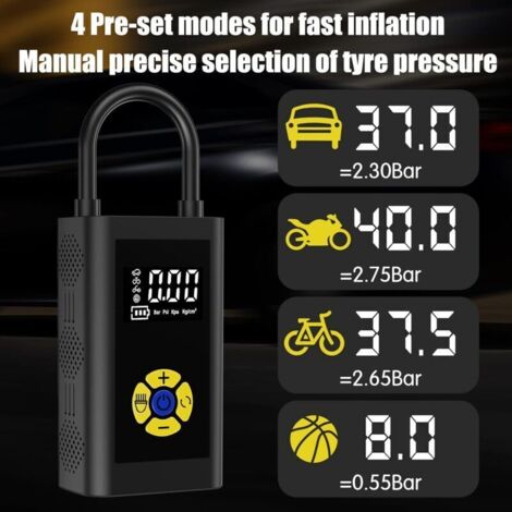 Présentation de notre compresseur d'air portable. Pompe à air pour vélo : forte puissance qui augmente rapidement l'air en 80 secondes, pompe à pneu de voiture. Pompe à air pour voiture Compact et léger, il permet de gagner du temps grâce à sa bonne adhérence et maintient ses performances même sous haute pression. Ne vous inquiétez pas du poids, sa construction légère vous permet de le sans effort dans votre sac à dos ou votre sac de vélo. Grande durabilité : assurez des performances de qualité supérieure avec notre gonfleur à pompe pour vélos pneumatiques construit avec des matériaux robustes. Compresseur D'air Portable Pour Gonfleur De Pneu, Pompe à Air 150 Psi Avec Manometre A Affichage Numerique Et Lampe De Poche Batterie Integree 9000 Mah Pompe A Air Pour Pneus De Voiture Velo Moto 92200760 Spécification:Nom : gonfleur de pompe pour vélos à air. Gonflage modernisé : augmente sans effort l'efficacité et permet de gagner du temps en gonflant rapidement les pneus de vélo, les ballons et bien plus encore pour les situations à haute pression. Gonflage sans effort : découvrez la combinaison idéale d'une bonne adhérence, d'un design ergonomique et d'un confort avec notre gonfleur à pompe Air Bicycles qui garantit un processus de gonflage sans effort et efficace. Couleur : noirMatériel:ABSPoids : environ 90gValeur de pression: 80PSIVannes applicables : vannes américaines/françaisesListe de colisage:1 * pompe à vélo au sol haute pressionNote:En raison des différents paramètres d'éclairage et d'écran, la couleur de l'article peut être légèrement différente de celle de l'image. Compresseur D'air Portable Pour Gonfler Les Pneus Mobilité efficace : transportez sans effort votre gonfleur de pompe à air portable à l'extérieur grâce à son design élégant et compact. Nos produits les plus populaires en vertu du nombre de ventes. Mis à jour fréquemment. ‹ N'importe quelle catégorie ‹ Auto et Moto ‹ Outils et dépannage Outils pour pneus et roues Chandelles Clés dynamométriques Clés en croix Compresseurs d'air Compresseurs d'air portatifs Crics de levage Démonte-pneus manuels Jauges de pression...