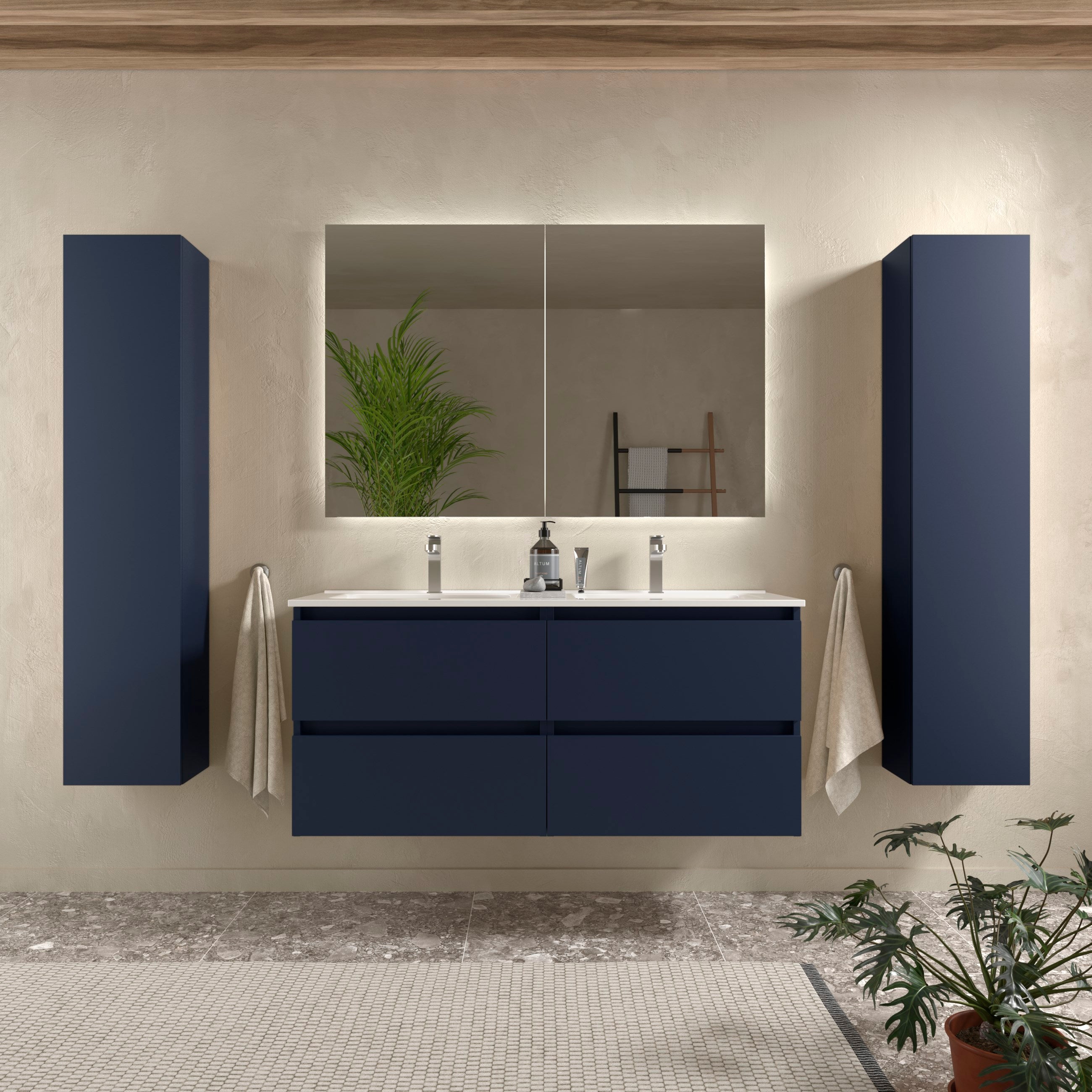 Type de Vasque: Lavabo intégré en céramique d'une pièce, Position Vasque; Centrale Pieds en bois massif Grand Espace de Rangement Optimisé - Dispose de 2 portes avec étagère intégrée chacune + 1 tiroir à coulissement doux et silencieux. Montage: Montage nécessaire (notice fournie), Colisage: 2 colisv Offrez-vous un niveau inégalé de confort, d'organisation et de plaisir sensoriel ! Surface lisse et sans joint, très facile à nettoyer et résistante aux taches d'eau et au calcaire, garantissant une hygiène parfaite et une excellente expérience utilisateur. Diamètre Perçage Robinet: 3,5 cm (Robinet non inclus), Nombre de Portes: 2 S'adapte à tous les styles de décoration de salle de bain et sublime l'esthétique de votre espace. Nombre de Tiroirs: 1 (à glissière silencieuse) Son système anti-débordement empêche efficacement les débordements. Meuble Sur Pieds Design Moderne Meuble De Salle De Bain BEQUIA 80cm Blanc Mat | Vasque à Poser | Leroy Merlin Meuble Salle De Bain Avec Tiroir Silencieux Meuble vasque - Marques, Stock & Livraison rapide chez Leroy Merlin. Un grand choix de produits aux meilleurs prix Portes et tiroir texturés agrémentés de poignées noires contrastantes pour un look moderne et exclusif. Meuble salle de bain sur pied Excellente Résistance à l'Humidité & à l'Eau - Revêtement laqué haute résistance offrant une finition raffinée et une imperméabilité totale à l'humidité et aux éclaboussures. L'intérieur du meuble comprend une étagère réglable, offrant un vaste espace de rangement pour tous vos articles de salle de bain et gardant l'espace bien organisé et épuré. Construction Robuste & Durable - Fabriqué en pieds en bois massif et panneaux MDF haute densité pour une structure extrêmement solide et durable. Meuble de salle de bain 100cm avec vasque à poser arrondie - 2 tiroirs Étagère Réglable: Oui (à l'intérieur du meuble) Pieds: Bois massif (essence durable), Forme: Rectangulaire, Style: Moderne / Minimaliste Design Épuré & Élégant - Finition blanche intemporelle et raffinée. Tiroir coulissant silencieux de grande capacite