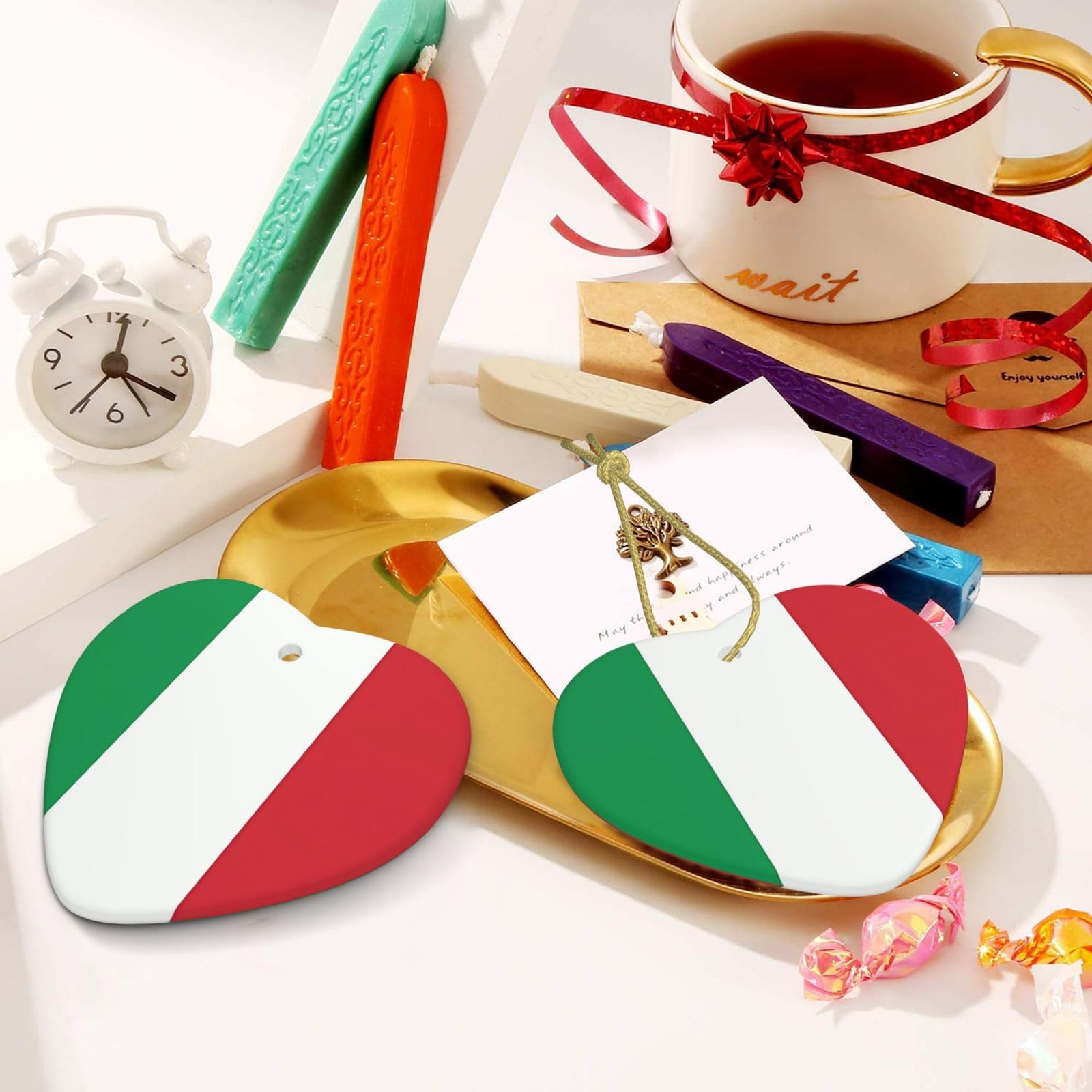 Faites de ce pendentif WHJWZY une partie de vos traditions de vacances et créez des souvenirs durables. Fabriqué avec soin et attention aux détails, ce pendentif en céramique est à la fois durable et exquis. Le pendentif WHJWZY en céramique imprimé doré de couleur unie est un incontournable pour créer une atmosphère festive pendant la saison des fêtes. Il fait également un souvenir attentionné ou un cadeau pour les amis et la famille Parcourez notre sélection de cadeau de noël en italie : vous y trouverez les meilleures pièces uniques ou personnalisées de nos boutiques Matériau durable : fabriqué en porcelaine blanche durable et équipé d'une corde métallique dorée robuste, le pendentif WHJWZY à motif drapeau italien est conçu pour durer et résister à l'usure de la saison des vacances, assurant qu'il peut être apprécié pendant des années. Boules De Noël Avec Le Drapeau Italien Illustration Stock Cadeau idéal : que ce soit pour les amis, la famille ou les collègues, ce pendentif en céramique est un cadeau de vacances attentionné et unique qui ne manquera pas d'être apprécié par tous ceux qui aiment décorer pour Noël. Entretien facile : avec des instructions de lavage simples qui ne nécessitent qu'une serviette ou un mouchoir pour essuyer la poussière, ce pendentif en céramique est facile à entretenir et à entretenir, ce qui en fait un ajout sans tracas à votre collection de décorations de vacances. Pendentif Céramique Drapeau Italien Décoration De Noël En Céramique Avec Drapeau De L'Italie Pendentif Festif Cadeau Souvenir Améliorez votre décoration de vacances avec cette pièce polyvalente, adaptée pour les fêtes de vacances, les récompenses scolaires ou comme accent décoratif pour les portes et les fenêtres. Fabriqué à partir de porcelaine blanche de qualité supérieure, cette décoration circulaire respire l'élégance et le charme. Accrochez-le avec le câble métallique doré inclus pour ajouter sans effort une touche de romantisme à vos fêtes festives.