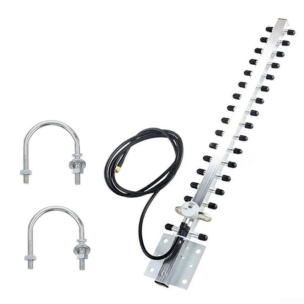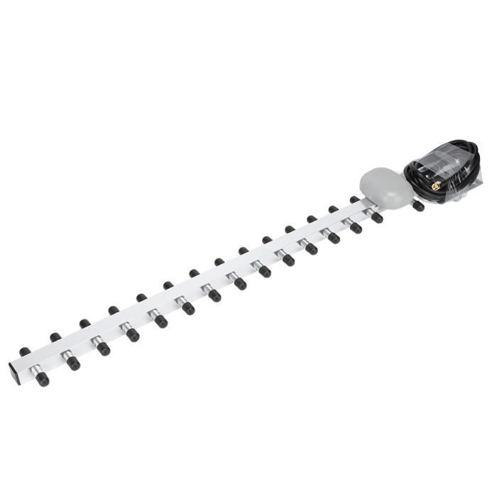 Gain : 25 dBi Polarisation : verticale. * Ce produit est une antenne WiFi directionnelle multifonctionnelle et haute performance. * Élargissez votre portée d'accès WiFi dans les espaces ouverts. Le profil compact et élégant le rend et se fond parfaitement dans n'importe quel environnement extérieur. Sa construction robuste assure une performance et une fiabilité durables, vous offrant un excellent signal WiFi pour une expérience en ligne transparente. Antenne Wifi Directionnelle 25dbi Antenne Yagi WiFi 4G/2.4G à Gain élevé 25dBi, Connecteurs Mâles RP-SMA/SMA Avec Câble Pour L'amélioration Du Réseau Sans Fil Antenne 2.4 Ghz Pour Routeur Portée WiFi améliorée : augmentez votre portée d'accès WiFi dans les espaces ouverts avec cette antenne WiFi directionnelle haute performance. Large compatibilité : conçue pour être compatible avec les modems, les cartes sans fil et les routeurs avec des ports d'antenne externes de 6,35 mm, cette antenne WiFi directionnelle offre des options de connectivité. Dimensions : 50 x 8 x 4 cm. Fabriquée avec des matériaux, cette antenne WiFi est conçue pour durer. Portée WiFi améliorée : augmentez votre portée d'accès WiFi dans les espaces ouverts avec cette antenne WiFi directionnelle haute performance. Il étend efficacement la zone de couverture, vous permettant de profiter d'une connexion sans fil plus forte et plus stable Caractéristiques : * * Fabriqué avec des matériaux de haute qualité, robuste et pratique. Gamme de fréquences : 2400-2500 MHz., Onde debout : ≤ 1,5., Impédance d'entrée : 50 ohms. Il étend efficacement la zone de couverture, vous permettant de profiter d'une connexion sans fil plus forte et plus stable. Matériau : alliage d'aluminium, ABS. Antenne directionnelle d'amplificateur de Signal WiFi extérieure avec Gain de 25dBi Compatible avec les routeurs et pour cartes sans fil ; Livraison · 8,05 Antenne Directionnelle 25dBi 2.4Ghz Câble 2m Bewinner - Antenne WiFi Extérieure 25dBi Directionnelle - Câble 2m RP-SMA - Compatible Routeurs Modem - Signal Stable Antennes Et Amplificateurs Connecteur : RP- pour SMA Longueur du câble : 150 cm.