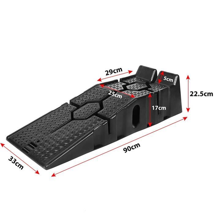 2 Rampes d'accès (1 paire) Ce produit vous permet de soulever facilement l'avant de votre voiture ou de votre camion afin de dégager l'espace et de faciliter l'accès lors de la vidange d'huile ou d'autres tâches., Spécifications. Lot de 2 rampes d'accès pour voiture - En plastique - Jusqu'à 245 mm - Capacité de charge : 7,25 tonnes par paire Matériau de qualité supérieure - Plate-forme élévatrice, rampes d'accès - Ces rampes ont non seulement une fiabilité beaucoup plus élevée que les rampes en acier, grâce à leur résistance au glissement, elles permettent également un maintien optimal 【Antidérapante】 :Cette rampe de haute qualité est dotée d'une fonction antidérapante et d'une bonne adhérence. RANZIX Rampe chargement universelle en plastique,Rampe voiture/rampe d 【Multi-application】 :Ce produit vous permet de soulever facilement l'avant de votre voiture ou de votre camion afin de dégager l'espace et de faciliter l'accès lors de la vidange d'huile ou d'autres tâches. 【Service après-vente professionnel】 :Nous nous engageons à fournir des produits de meilleure qualité, veuillez nous contacter rapidement si vous avez des questions. Rampes Pour Véhicule Bas Rampe D'accès Pour Voiture, Rampe En Caoutchouc Robuste, Rampe De Seuil Rampes Pour Vidange Huile Accès Dessous Couleur : Noir Poids total en charge : 16,000 lbs Hauteur de levage : 170 mm Largeur de travail : 245 mm Convient aux véhicules à faible garde au sol Conception robuste en plastique Conception emboîtée pour un stockage facile Contenu de la livraison. 1 paire de rampes de chargement de voitures Rampes robustes jusqu'à 7,25 tonnes Plate-forme de chargement de voitures Description Fabriquées en plastique robuste, elles sont plus fiables que les rampes en acier. Cette rampe de haute qualité est dotée d'une fonction antidérapante et d'une forte adhérence au sol.
