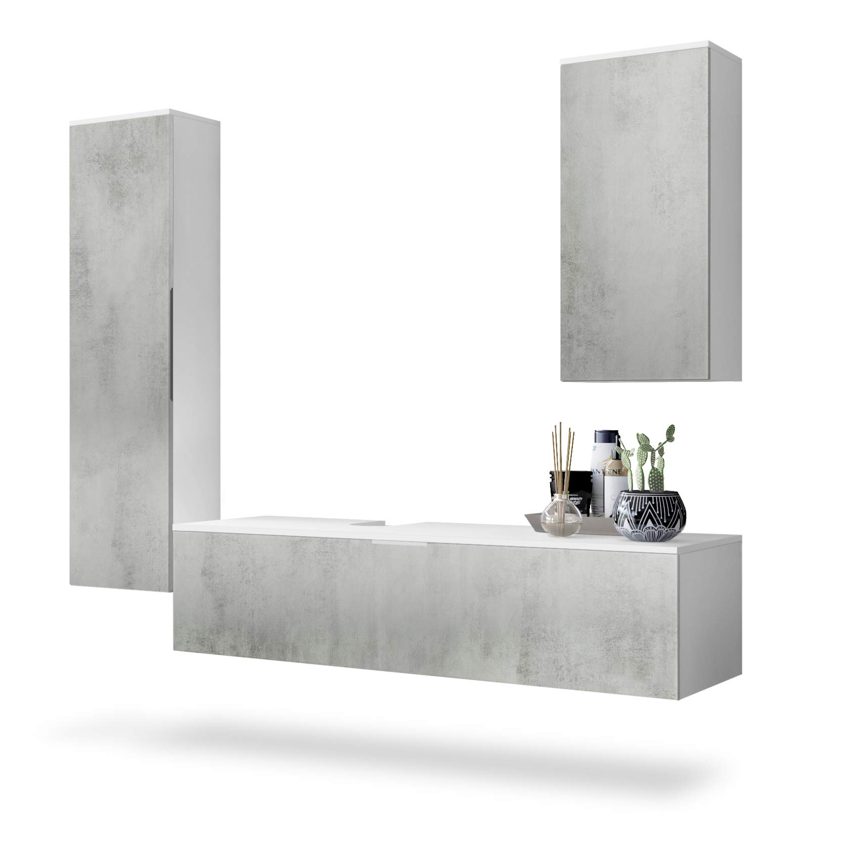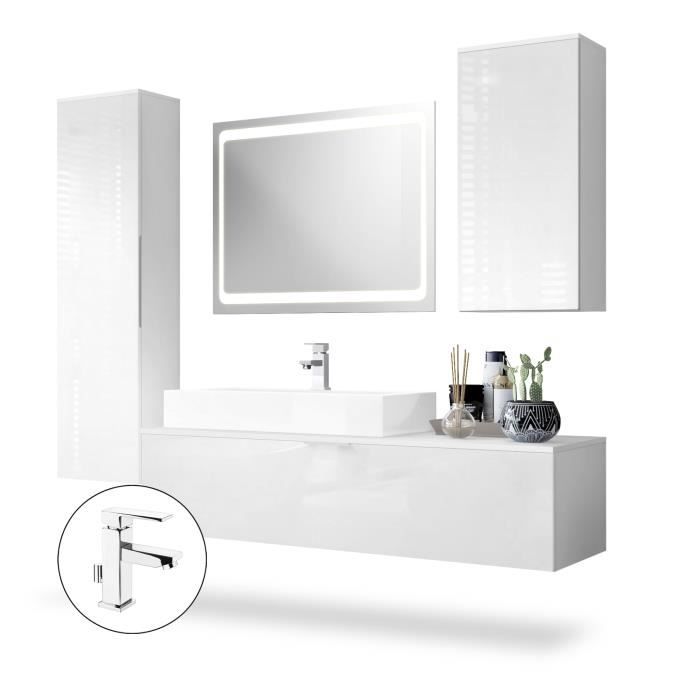 Ils sont disponibles dans différentes couleurs actuelles. La surface sans poignées des 2 armoires suspendues offre à cet ensemble de salle de bains un aspect lisse et propre. Dimensions du meuble sous vasque en cm (LxHxP) : 140 x 36 x 51 La fermeture est également douce grâce aux charnières soft close. Dimensions de l'ensemble des meubles comme monté et illustré en cm (LxHxP) : 189 x 193 x 51 Finition de qualité - Made in Germany. Les portes disposent des poignées encastrées. L’abattant est équipé d'une poignée métallique. Il est équipé par un meuble sous vasque avec lavabo et armature, d’un miroir LED éclairé et de 2 armoires suspendues. Miroir LED moderne Le miroir persuade à travers ses LED blanches et peut être monté aussi bien verticalement qu'horizontalement. Dimensions comme monté et illustré en cm (LxHxP): 189 x 193 x 51 |L'ensemble de meubles de bains Beach est équipé d'un meuble sous vasque avec lavabo et armature, d'un miroir LED et de 2 armoires suspendues avec une surface sans poignées. Les façades sont en rrière la porte de l'armoire haute, se trouvent quatre étagères en bois réglables, la petite armoire comporte deux... Il y a deux compartiments spacieux derrière l’abattant de l'armoire basse. Matériau : grâce à ses façades en MDF, un lavabo en fonte minérale durable de haute qualité et à son corps en panneaux de particules mélaminés, cet ensemble de salle de bain est agréablement léger et stable, et de plus particulièrement facile d'entretien. Contenu de la livraison : L'ensemble de salle de bain avec lavabo, robinetterie et miroir est inclus. Les accessoires de montage sont en métal et assurent un montage stable. Meuble Salle de Bains 80 cm, Vasque Rectangle, Miroir Led et Colonne – Chêne naturel et Noir – UBY ... 557,00€ Le prix actuel est : 557,00 It includes a hanging washbasin base cabinet with a flap and two wall cabinets that offer you additional storage space. Dimensions de la grande armoire suspendue en cm (LxHxP) : 37 x 143 x 29 Vladon BADMÖBELSET Beach Fronten in Weiß Hochglanz jetzt nur online La vasque est en fonte minérale brillante. Coupe stylée de l’armature Avec son design angulaire, l’armature s'adapte parfaitement à la vasque carrée. Dimensions de la vasque en cm (L x H x P) : 80 x 13,5 x 43 Une notice illustrée détaillée et le matériel de montage nécessaire garantissent un montage rapide et facile ! Grâce à la fonction-Touch intégrée, il suffit de toucher le miroir de manière minimale dans la zone du symbole d'alimentation pour l'allumer ou l'éteindre. Vous pouvez les trouver dans une grande surface de bricolage bien assorti. Dimensions du miroir (L x H): 85 x 70 Meuble Sous Vasque Chêne Naturel Pack Meuble Salle De Bains 80cm Blanc 3 Tiroirs, Vasque, Miroir 60x80 à Leds Intégrées - XENOS AURLANE | Brico Cash Meuble Vasque Salle De Bain Design : Le corps de l'ensemble de salle de bains en blanc mat et les façades en chêne nature créent une ambiance moderne et chaleureuse. Veuillez noter que le siphon ou les fixations pour la vasque ne sont pas inclus dans cette offre.