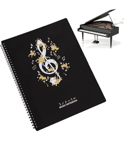 Grâce à sa reliure en spirale, le classeur s'ouvre à 360° maximum, ce qui permet de tourner les pages plus rapidement et plus facilement., Matériau PP fiable. Vous pouvez stocker vos fichiers comme vous le souhaitez sans perdre de place., Reliure spirale à 360°. Les coins arrondis et l'emballage anti-reflet garantissent une utilisation facile et la possibilité de travailler directement sur les partitions. Le classeur de partitions est si robuste qu'il peut être facilement tourné. Le porte-piano est facile à insérer et à retirer dans des partitions ou des dossiers. Taille du papier A4 : ce classeur de partitions a un format de papier A4, et chaque feuille de musique a une fermeture à anneau pour harmoniser la propreté du papier et faciliter le tournage des pages et la lecture Classeur à Pochettes/Dossier de rangeent pour partitions de usique/A4 Avec des doubles ressorts solides, le classeur s'ouvre à plat et reste sur le pupitre dans un angle de vision confortable. Un excellent cadeau pour les pianistes, les musiciens et les amateurs de musique lors d'occasions spéciales. Parfait pour les musiciens : ce porte-notes est idéal pour les musiciens, les orchestres, les chorales d'école et toute personne qui travaille régulièrement avec des partitions. Cette solution pratique vous aide à organiser les partitions en vrac et offre suffisamment d'espace pour toutes vos notes et notes. Protection Partitions Imperméable UROAD Classeur A4 Pour Partitions De Usique, Cheises Pour Partitions Classeur Partitions A4 Anti-éblouissement Facile de déplacer, classer, insérer ou retirer vos partitions ! TESTÉ ET APPROUVÉ : ce porte-partitions a été créé et testé par des choristes et des musiciens dans des conditions réelles pour vous offrir un produit adapté au mieux à vos besoins Creux au milieu et enveloppés de trois côtés, les feuilles maintiennent les notes en toute sécurité. Ce classeur offre plus de pages que de nombreux produits similaires sur le marché. Système de tri optimal : le porte-notes dispose de 30 poches pouvant contenir jusqu'à 60 feuilles. La poche intérieure est fabriquée en polypropylène de haute qualité, léger et imperméable, qui offre une protection efficace contre les taches et a une longue durée de vie. Le design noir simple des porte-notes est résistant aux taches, durable et arbore un joli motif de notes sur la couverture., Facile à utiliser. Il est léger, facile à transporter et protège efficacement vos notes contre les dommages.