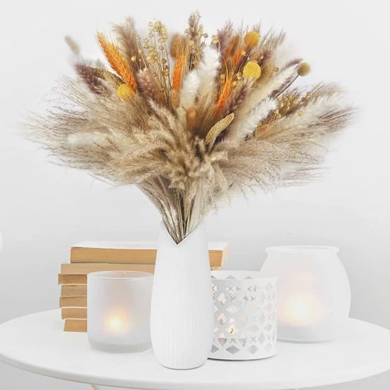 ZONES APPLICABLES : Les fleurs décoratives de style boho aux tons chauds créent une atmosphère automnale, parfaite pour décorer les salons, les tables à manger, les salles de bain, les cuisines, les chambres à coucher, les bureaux, les mariages bohèmes, les fermes vintage et plus encore SHOKAN Lot de 10 bouquets d'herbe de la pampa séchée XXL - Fleurs séchées naturelles et moelleuses - Pour décoration bohème, salon, chambre à coucher, mariage - 100 cm Pourquoi ajouter des fleurs de pampa à sa décoration d’intérieur ENTRETIEN FACILE : les décorations d'herbe de pampas séchée sont faciles à entretenir, car elles ne nécessitent pas d'eau. Conserver hors de portée des enfants. Tauras Pampas Herbe Séchée, 40 Pcs Ensemble Fleurs Séchées, Pampa Herbe... BELLE ET LONGUE DUREE : les bouquets de fleurs séchées ne se fanent pas, ne pourrissent pas et ne se décolorent pas, ce qui les rend idéaux pour des décorations durables Paquet : 100 pièces Set de décoration de fleurs séchées Avertissement De Sûreté Précautions à prendre lors de la manipulation de plantes séchées : peut causer des allergies chez certaines personnes. Bouquet Fleurs Séchées Bouquet De Fleurs Séchées Petit Bouquet De Roseaux Ensemble De Roseaux Decoration Salon
