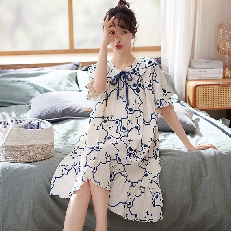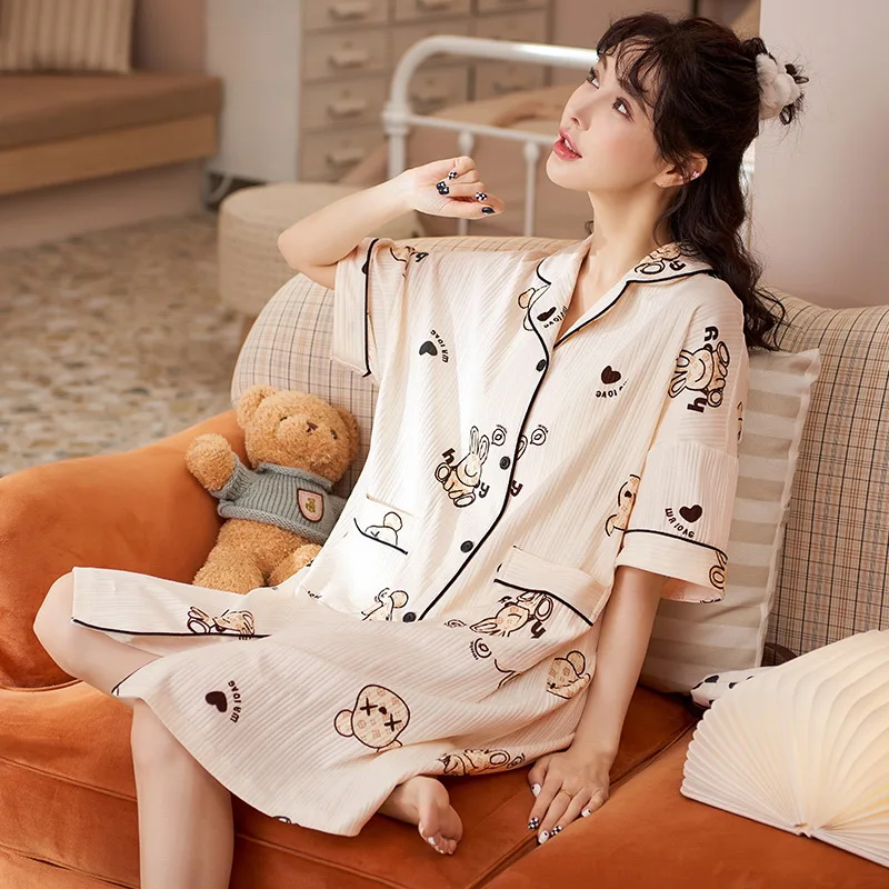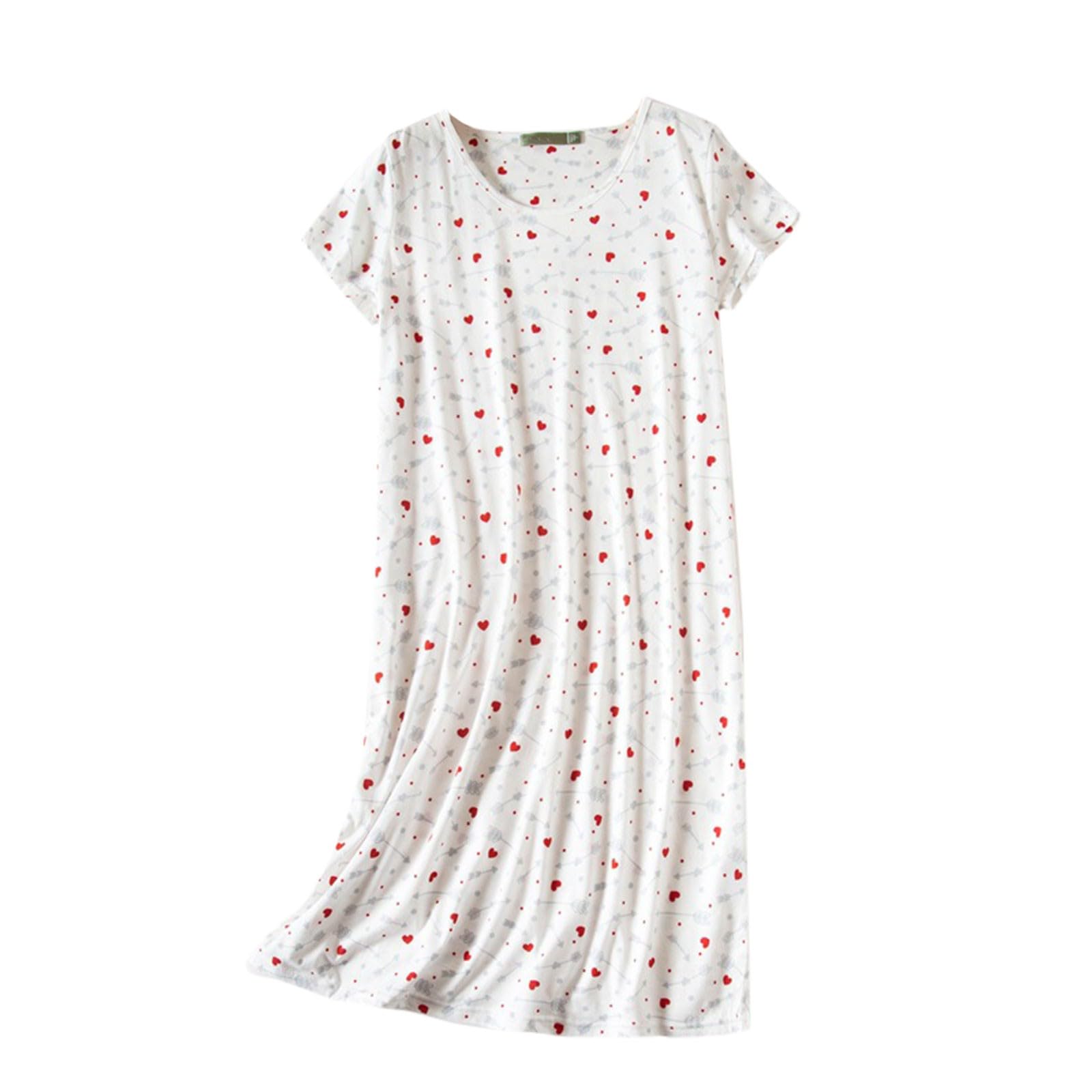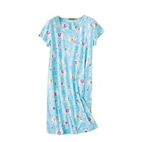 Chemise De Nuit Pour Femmes Pyjama En Coton - Robe De Nuit à Manches Courtes Et Col Rond Pour Femmes, Chemise De Nuit Ample Décontractée Pour L'Été