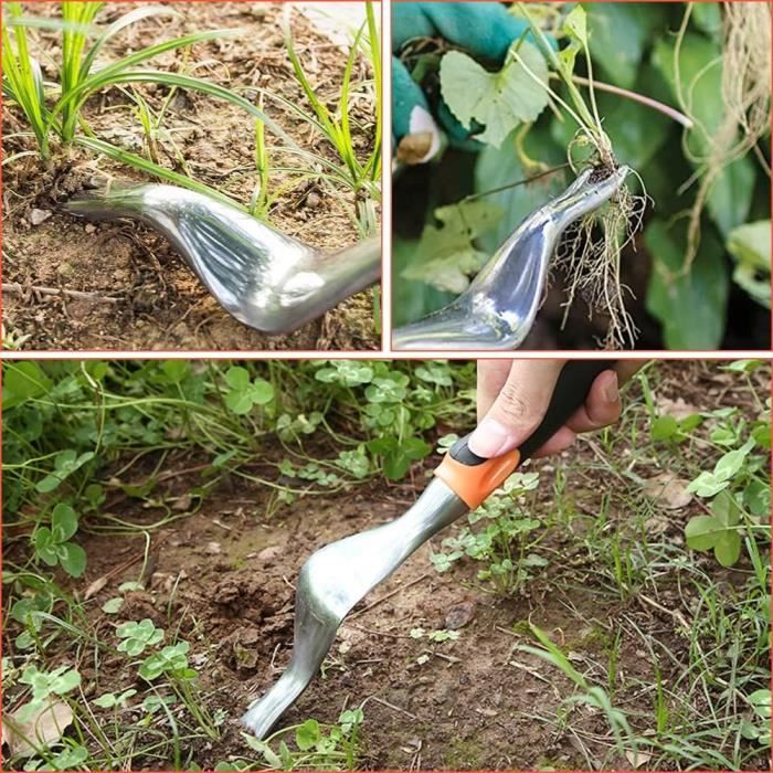 Éliminez efficacement mousse, pissenlits, chardons et autres mauvaises herbes à racine pivotante avec cet extracteur de mauvaises herbes polyvalent pour jardin, pelouse, potager, pavés, etc. La poignée en caoutchouc offre une prise confortable pendant le désherbage, réduisant la fatigue des mains. Le désherbeur est facile à utiliser : il suffit de l'insérer dans le sol, d'appuyer et d'arracher les mauvaises herbes sans effort. En plus de désherber, il peut également être utilisé pour transplanter des fleurs et des semis Ergonomique] Outil de Désherbage Manuel est conçu selon le principe de l'effet de levier, qui peut facilement séparer les racines et les tiges, économisant du travail et des efforts. La pelle en forme de Y permet de creuser plus facilement dans le sol et d'enlever les racines profondes Fabriqué en alliage d'aluminium robuste, cet outil de 29 cm est durable, résistant à la rouille, et doté d'une poignée en caoutchouc pour une prise confortable pendant le désherbage. Extracteur de mauvaises herbes, désherbeur manuel avec poignée en acier Conception ergonomique basée sur le principe de levier pour faciliter la séparation des racines et des tiges, avec une pelle en forme de Y pour creuser plus facilement dans le sol. en faisant un compagnon indispensable pour le jardinage. Outil Arrachage Mauvaises Herbes Racine Désherbeur Manuel 4 Dents FUXTEC FX-UKST, Arracheuse De Mauvaises Herbes Et Chardons - Robuste Outil Jardinage Ergonomique Optez pour le Désherbeur Manuel en Alliage d'Aluminium avec Poignée en Caoutchouc pour un désherbage rapide, efficace et confortable. Cet extracteur de mauvaises herbes de 29 cm est conçu pour éliminer divers types de mauvaises herbes à racine pivotante dans votre jardin, potager, pelouse, ou même sur des pavés. Fabriqué en alliage d'aluminium robuste, cet outil est durable et résistant à la rouille, assurant une longue durée de vie.