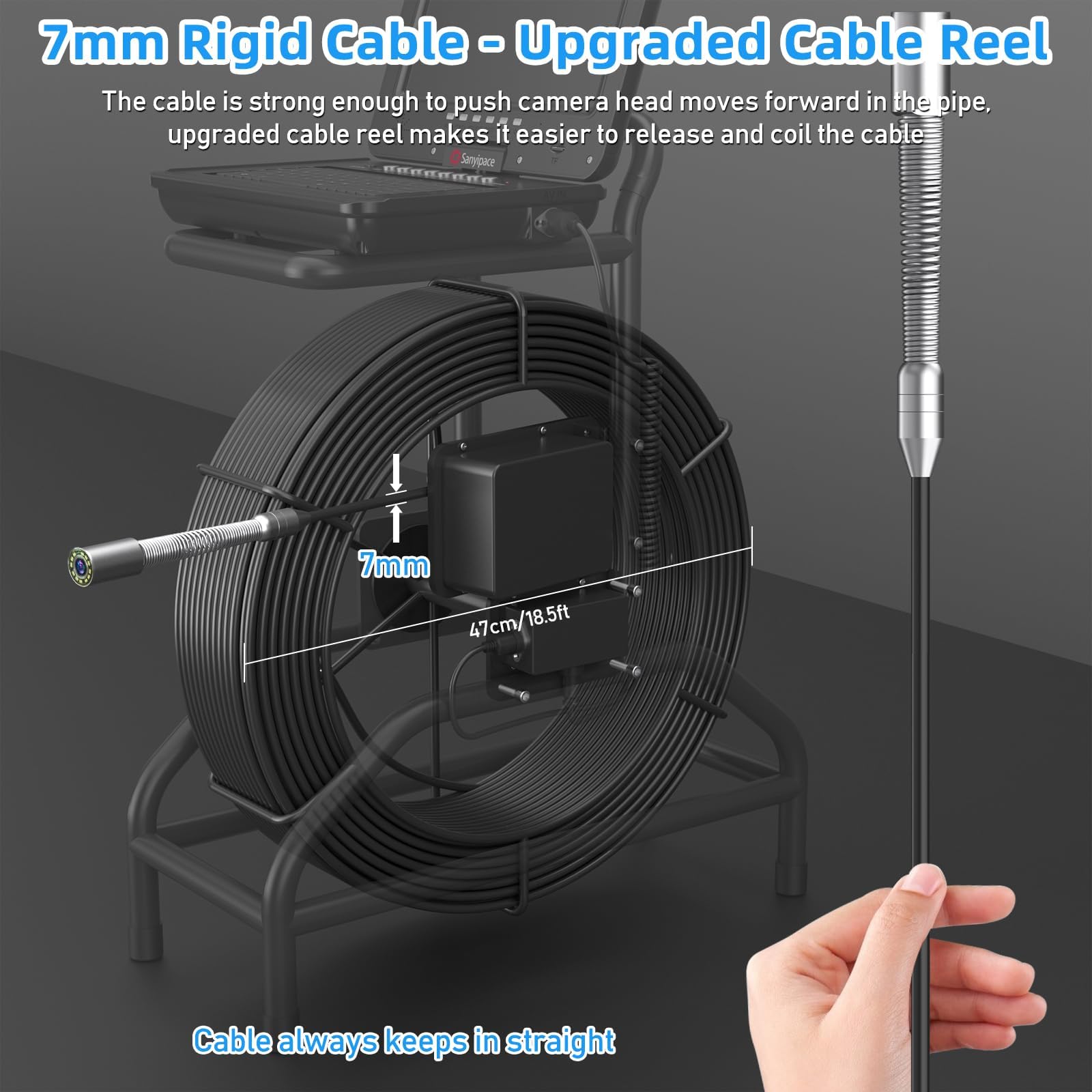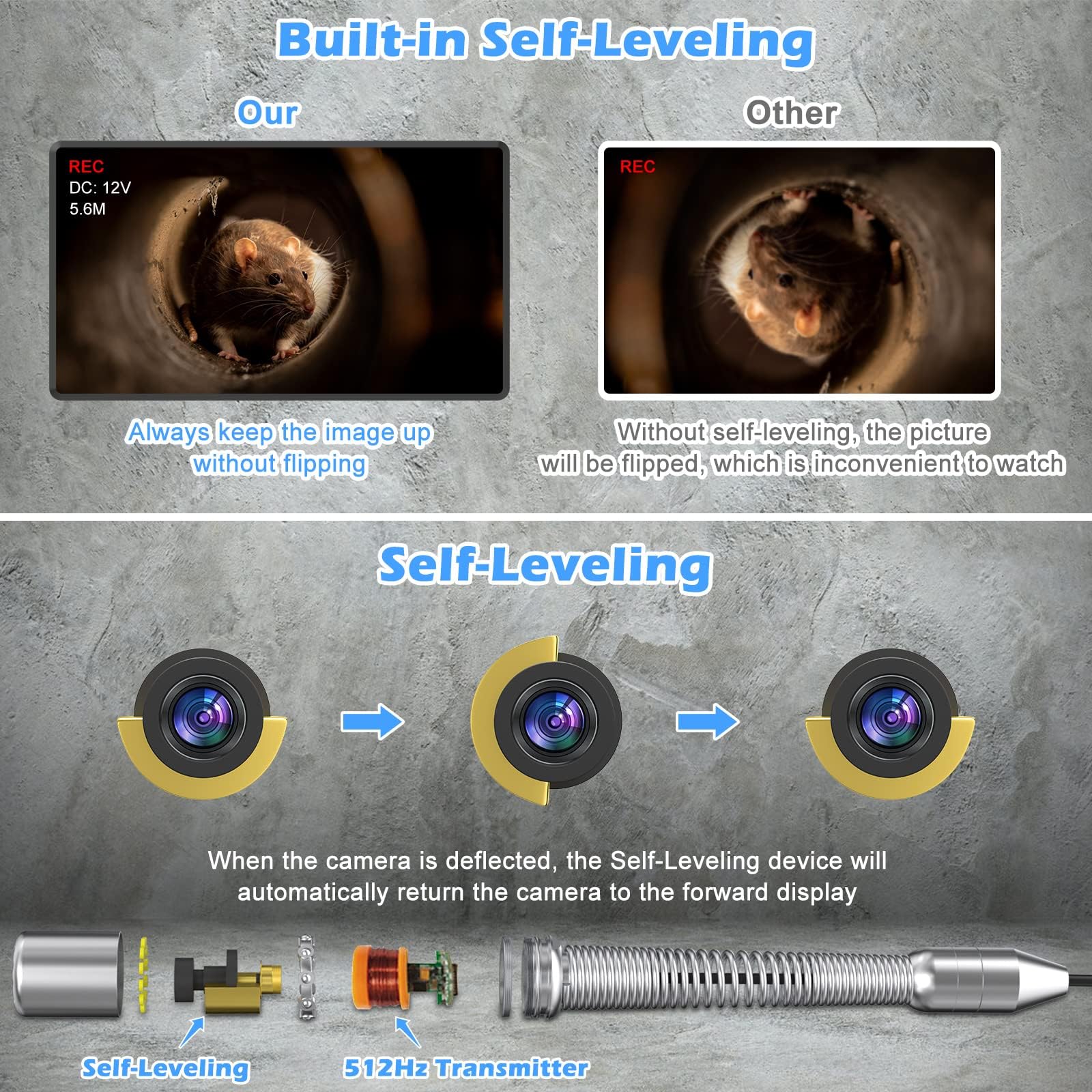 il calcule la longueur en fonction des temps de rotation de la bobine, nous connaîtrons donc la profondeur de la caméra entrant dans le pipeline. 【CÂBLE SEMI-RIGIDE】Pour cette caméra d'inspection d'égout, nous avons 2 types de câbles à choisir, dont le diamètre est de 5mm ou 7mm. Caméra d'égout, 50 m de long, caméra de drainage autonivelante avec émetteur 512 Hz, télémètre, écran 9 pouces, caméra de tuyau HD 1080p avec 12 lumières LED Anysun Caéra D'inspection avec Localisateur, Caera Inspection Canalisation avec éetteur-sonde... De plus, le palier autonivelant nivelle l'objectif de la caméra par gravité pour maintenir l'image droite. Caméra égout écran 9 Caméra Inspection Canalisation 50m - Écran 9 HD - Localisateur 512 Hz - Étanche IP68 - Professionnel Plomberie Bidirectionnel Articulé 180 IPS 5 Zoom 8x l'émetteur de signal 512hz à l'intérieur peut fonctionner avec la plupart des détecteurs 512hz 【CLAVIER USB】 il y a un clavier USB à l'intérieur de la boîte de caméra de vidange, il a été utilisé non seulement pour marquer certaines notes importantes pendant l'enregistrement vidéo, mais aussi pour jouer le rôle de contrôleur pour l'ensemble de l'appareil, par exemple, la réinitialisation du compteur, la réinitialisation de l'entrée, le réglage des LED , et la fréquence 512hz s'allume/s'éteint. Camera Endoscopique Camera D'inspection Canalisation 512hz, Caméra Endoscopique 50M HD Avec Auto -nivellement Et Compteur De Mètres, Caméra D'égout Avec Écran De 9 Et Clavier, Fonction D'enregistrement Audio & Vidéo Camera Thermique Les propriétés semi-rigides lui permettent de fonctionner parfaitement lorsque la tête de caméra est avancée dans le tuyau. 【MICROPHONE ET HAUT-PARLEUR INTÉGRÉS À L'ÉCRAN DE 9】 Cette caméra d'inspection du système de drainage Sanyipace est équipée d'un écran couleur IPS de 9 pouces, fournit des images HD et vives et prend en charge un zoom avant 5 fois, avec un pare-soleil en métal pour protéger les écrans. il y a un microphone à l'intérieur de l'écran, vous pouvez marquer le problème de tuyau par audio lors de l'enregistrement vidéo.