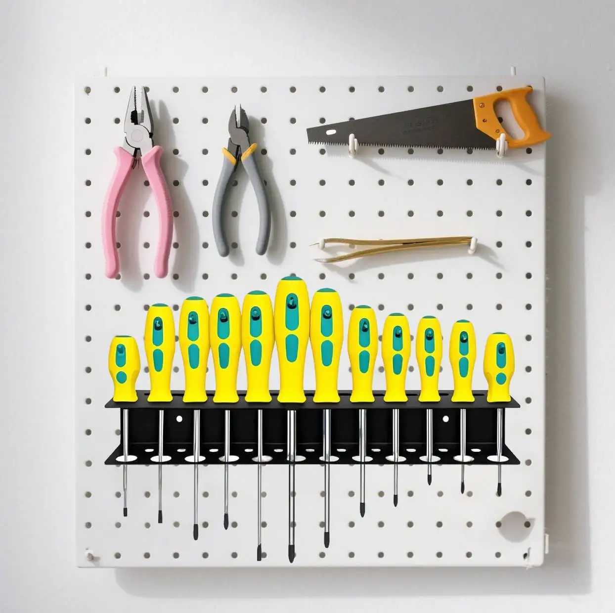 Solution murale à outils professionnelle : cette paroi à outils en métal donne un aspect professionnel et propre à votre atelier ou garage. Idéal comme organisateur mural à outils, porte-outils mural ou atelier - pour un rangement systématique sur n'importe quel mur à outils Parfait pour les bricoleurs et les professionnels qui souhaitent augmenter l'espace et la productivité avec une étagère murale d'atelier ou un organisateur d'outils mural. Etagere Murale Garage Support Pour Tournevis UNITEDPOWER Support De Tournevis, Support Mural Pour Atelier, Abri De Jardin, Garage, Maison, Peut Contenir Jusqu'à 32 Tournevis Ou Petits Outils Support Tournevis Atelier Porte Tournevis Utilise efficacement l'espace de rangement vertical, permet de ranger les tournevis 3., Lot de 2 pièces avec 14 + 23 trous - Grande capacité 4., Facile à assembler, idéal pour les tournevis, marteaux, clés, pinces et outils de bricolage. Solution murale à outils professionnelle : ce panneau à outils en métal donne un aspect professionnel et propre à votre atelier ou garage. Idéal comme organisateur mural à outils, porte-outils mural ou atelier – pour un rangement systématique sur n'importe quel mur à outils. Système d'organisation des outils compact et efficace : avec ce lot de 2 supports muraux pour outils, vous pouvez ranger vos outils de manière ordonnée et accessibles dans un petit espace Support Tournevis Cdiscount Support Tournevis Mural Support Mural Magnétique Pour Tournevis - 32 Cm - 23 Emplacements - En Acier Robuste - Pour Garage/atelier Rangement Mural Outils Support De Tournevis Leroy Merlin Organisateur mural d'outils : avec cet organiseur mural à outils, vous créez plus d'espace de rangement efficacement. Montage mural simple et flexible : le tournevis mural est livré avec des vis et des chevilles et se monte facilement sur des surfaces en brique, en béton ou en bois. Lot de 2 porte-outils muraux - Grande capacité : ce kit de porte-outils mural contient deux porte-outils en métal avec 14 et 23 trous - Idéal comme support de tournevis et porte-pinces.