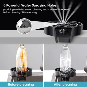 Liste des packages 2 x Rondelles de verre pour robinet Caractéristiques - Matériau : acier inoxydable, cuivre, gobelet de rinçage d'évier en ABS. Rince-bouteilles en verre pour bar convient au nettoyage de la plupart des tasses, automatique, simple et pratique pour la vie quotidienne, rince-bouteilles et gobelets - Couleur : Rince-gobelet d'évier de cuisine principalement noir. - Il peut être facilement installé et peut être largement utilisé dans les bars, les cuisines, les magasins de thé au lait, etc. Rince-gobelet pour évier - il est fabriqué à partir d'abs, d'acier et de cuivre de pour une utilisation longue durée et durable, rince-bouteille pour évier Accessoire évier Lavage Tasses Rinceur En Verre Pour évier De Cuisine – Rinceur De Tasse En Acier Accessoire Cuisine Pratique - Le lave-gobelet peut rincer soigneusement les résidus en quelques secondes, et le jet d'eau à haute pression peut atteindre les endroits que vous ne pouvez atteindre avec le rince-gobelet. Rince-gobelet - il peut être facilement installé et peut être largement utilisé dans les bars, les cuisines, les salons de thé au lait, etc. Gobelet de rinçage d'évier - la structure est raisonnable, efficace et pratique, et peut nettoyer efficacement le corps de la tasse, c'est un lave-tasses, un rince-verres d'évier de cuisine - C'est plus rapide et plus facile que de tremper ou de frotter, et peut facilement vous aider à économiser du temps et de l'énergie au travail. DIYEAH 1 Ensemble Rinceur de Verre Automatique Inoxydable de Nettoyage - Conception automatique, efficace et pratique, efficacité de nettoyage élevée, gobelets de rinçage très pratiques. LID -Laveur de bouteilles Robinet Lave-Bouteille Haute Pression Buse 5...