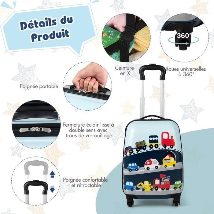 Achetez-le avec Cet article : DREAMADE Valise 16" et Sac à Dos 12", Bagage à Main Rosé/Coloré pour Enfants Filles et Garçons avec Poignée Réglable, 4 Roues Pivotante à 360° en Dessin, Bleu-avion voiture, Valise 16" et Sac à Dos 6199€ Recevez votre article 26 sept. - 30 En stock 🎀Matériaux sûrs et durables — Fabriqué en ABS et en tissu Oxford, cet ensemble de valise est solide, durable et imperméable. Valise 4 Roues Pivotantes VALISE ENFANT 18& Et Sac à Dos 12" Bagages à Main à Motif Astronaute Valise Trunki Description: Notre ensemble de valise comprend une valise et un sac à dos, le grand espace de rangement vous permet de ranger les objets dont votre enfant aura besoin pendant le voyage, comme les vêtements, les chaussures, les jouets, les collations, etc., ., Les enfants les aimeront grâce à ses dessins animés aux couleurs vives. 🎀Design ergonomique — Le set de bagages est conçu avec la poignée rétractable et les bretelles réglables pour que chaque enfant puisse l'utiliser à une hauteur confortable. 🎀Cadeaux pour les enfants — Notre bagage est livré dans différents styles avec des motifs mignons que vous pouvez choisir, ce qui en fait le cadeau parfait pour un garçon ou une fille. La taille parfaite permet d'emporter la valise dans l'avion. 🦉Design ergonomique - Le set de bagages est conçu avec la poignée rétractable et les bretelles réglables pour que chaque enfant puisse l'utiliser à une hauteur confortable Valise Enfants à Roulettes 16'' DREAMADE avec Coque Rigide, Poignée en 🎀Ensemble de bagages — La combinaison d'un bagage de 16’’ et d'un sac à dos de 12’’ offre un vaste espace de rangement pour les affaires de votre enfant et est parfaite pour les voyages. Le film pelable sur la surface est résistant à l'usure. Caractéristiques: Dessin animé de trolley pour attirer les enfants Déplacement facile avec 4 roues pivotantes à 360° Stabilité et durabilité avec des matières de haute qualité Grande capacité avec une valise 16 et un sac à dos 12 Poignée télescopique pour les enfants de régler librement la hauteur Idéals pour avion, train, bateau ou voiture dans un voyage Utilisation de matériaux d’ABS pour résistance aux chutes et à l’eau Spécifications: Couleurs: Multicolore Matériel: ABS+PC, Polyester Dimension de la valise: 32,5 x 26 x 46,5 cm (L x l x H) Dimension du sac à dos: 26 x 12 x 33,5 cm (L x l x H) Poids net de la valise:1,6 kg Poids net du sac à dos: 0,4 kg Âge approprié: Plus de 3 ans Livraison: 1 x Valise 1 x Sac à dos Attention: Recommandé pour les enfants de plus de 3 ans Si vous avez des questions, veuillez nous contacter ,nous vous répondrons dans les 24 heures Les livraisons se font en France métropolitaine à l'exception des départements d'outre-mer