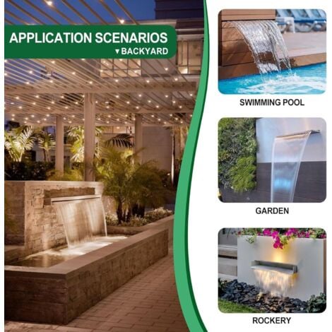 Fontaine décorative en acier inoxydable 304, sortie cascade, déversoir pour cour, jardin, villa, piscine, 300 mm Caractéristique : Le l'entrée est en bas et la bande lumineuse est placée sur le bord inférieur Diamètre du connecteur : env. Fontaine Jarre Pour Piscine Fontaine De Piscine Cascade Acier Inoxydable 304 Sortie Cascade Fontaine Cascade Piscine Mur-Rideau D'eau Cour U00c9tang U00c0 Poissons Paysage AWWXJ (Color : Black, Size : 1m/3.3FT Fontaine Piscine [Conception à large ouverture supérieure] Doté d'une plate-forme horizontale élargie, le déversoir de la cascade permet effet d'écoulement d'eau uniforme, complet et gracieux. [Large application] Convient aux environnements extérieurs tels que les cours, les villas, les rideaux d'eau d'étang et l'aménagement paysager de jardin. [Installation facile] Ce bec de fontaine cascade en acier inoxydable est facile à installer, nécessitant uniquement la connexion du connecteur en PVC à la pompe à eau pour l'installation. Cascade Paysage pour Jardin Extérieur, Fontaine d'Extérieur en Acier... Weejian Cascade déversoir de Jardin Kit Fontaine de Piscine en Acier Spécification : Type d'article : Sortie de cascade Matériau : Acier inoxydable 304 Application : Cour, villa, piscine et rideau d'eau, aménagement paysager de jardin, etc. 32 mm / 1,26 pouces Liste de colisage : 1 x sortie cascade 1 x connecteur Remarque : Pour maintenir la clarté de l'eau et éviter l'accumulation de tartre, pensez à utiliser des filtres à pression ou des filtres à débit pour garantir que l'eau reste propre et pure. [Acier inoxydable 304] Fabriquée en acier inoxydable 304, cette sortie de cascade est robuste, résistante à la rouille, assure la durabilité, étroitement soudée, empêchant efficacement les fuites.