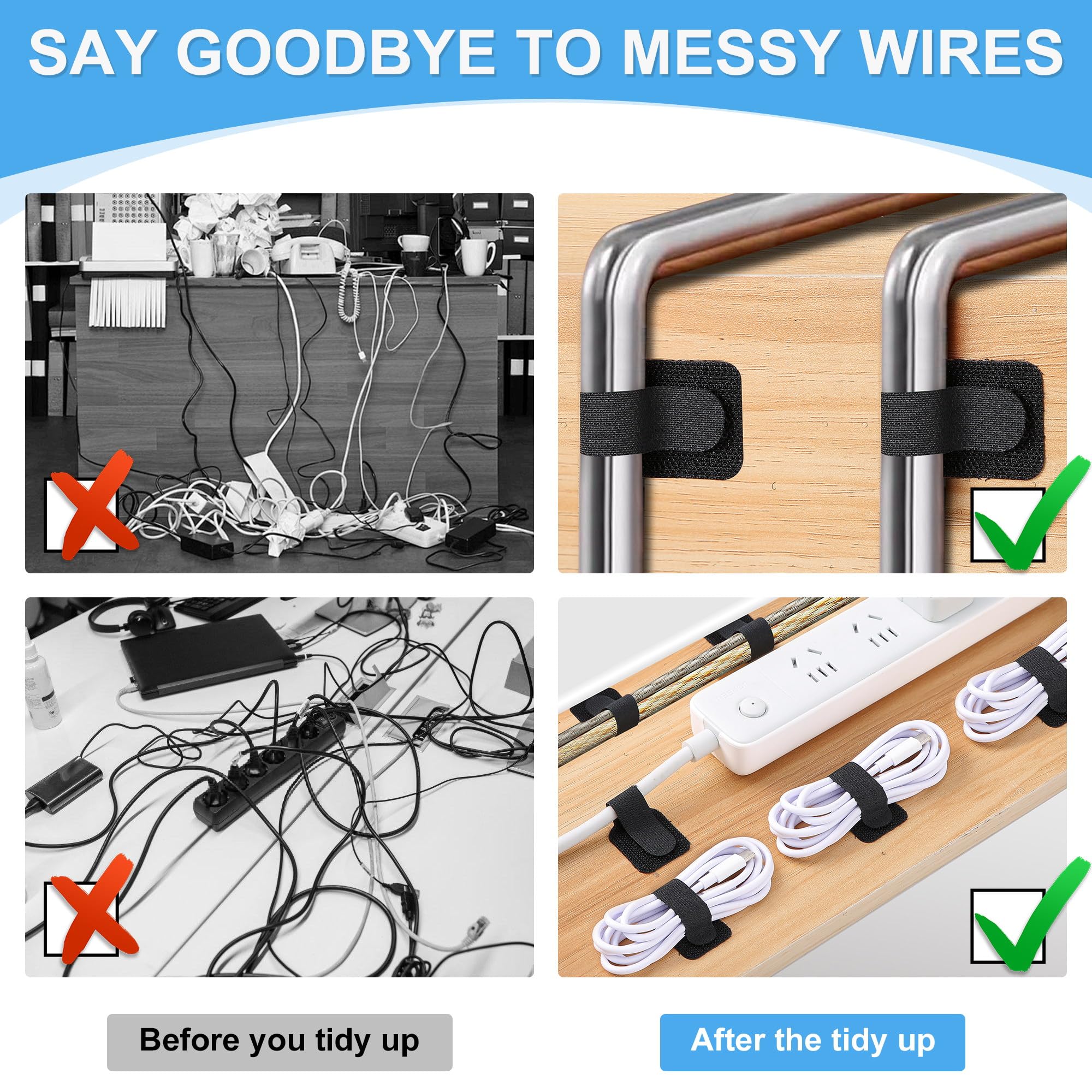 Grâce à un ruban adhésif fortement adhérent, les clips de câble restent solidement en place et ne laissent pas de résidus lors du retrait. Ce set comprend 60 serre-câbles auto-adhésifs (30x noir, 30x blanc), qui offrent une solution flexible et pratique pour votre gestion des câbles. Polyvalents, ils conviennent aux câbles d'ordinateur et de télévision, aux câbles réseau, aux câbles de charge ou encore aux guirlandes lumineuses. 100 Pinces Attache Câbles Adhésives Noir, Organiseur Câbles Réseau Que ce soit à la maison, au bureau ou dans l'atelier, ces supports de câble sont une solution pratique et fiable pour un environnement bien rangé., 1., Quantité & couleurs: 60 pièces de serre-câbles – 30x noir et 30x blanc, pratiques pour différentes utilisations et faciles à distinguer., 2., Forte adhérence: Équipées d'un ruban adhésif double-face de haute qualité, offrant une tenue sûre sur carrelage, plastique, bois et murs peints, sans laisser de résidus., 3., Flexible & ajustable: La fermeture velcro permet un réglage facile – les câbles peuvent être ajoutés ou retirés à tout moment, sans outils compliqués., 4., Ordre & propreté: Idéaux pour regrouper proprement câbles et fils, éviter les enchevêtrements et garder l'espace de travail rangé – parfait pour bureau, TV et PC., 5., Domaines d'application: Convient pour bureau, salon, cuisine ou atelier; également pratique pour guirlandes lumineuses, câbles réseau, câbles de charge et de nombreux autres types de câbles. Organiseur de fils multifonction : pas seulement pour les câbles, ce lot de 50 attaches réutilisables fonctionne parfaitement comme organisateur de fils de décoration de Noël, aide à la gestion des câbles sous le bureau ou outil de rangement de fils à usage général Lot 60 Pièces Noir Et Blanc 30 Clips Câbles Adhésifs – Attaches Auto-Collantes, Organiseur Fils, Maison & Bureau | Leroy Merlin Clips Cable Adhesif 50 Pièces Clips de Câbles Réglables, Attaches de Câble en Nylon Auto...