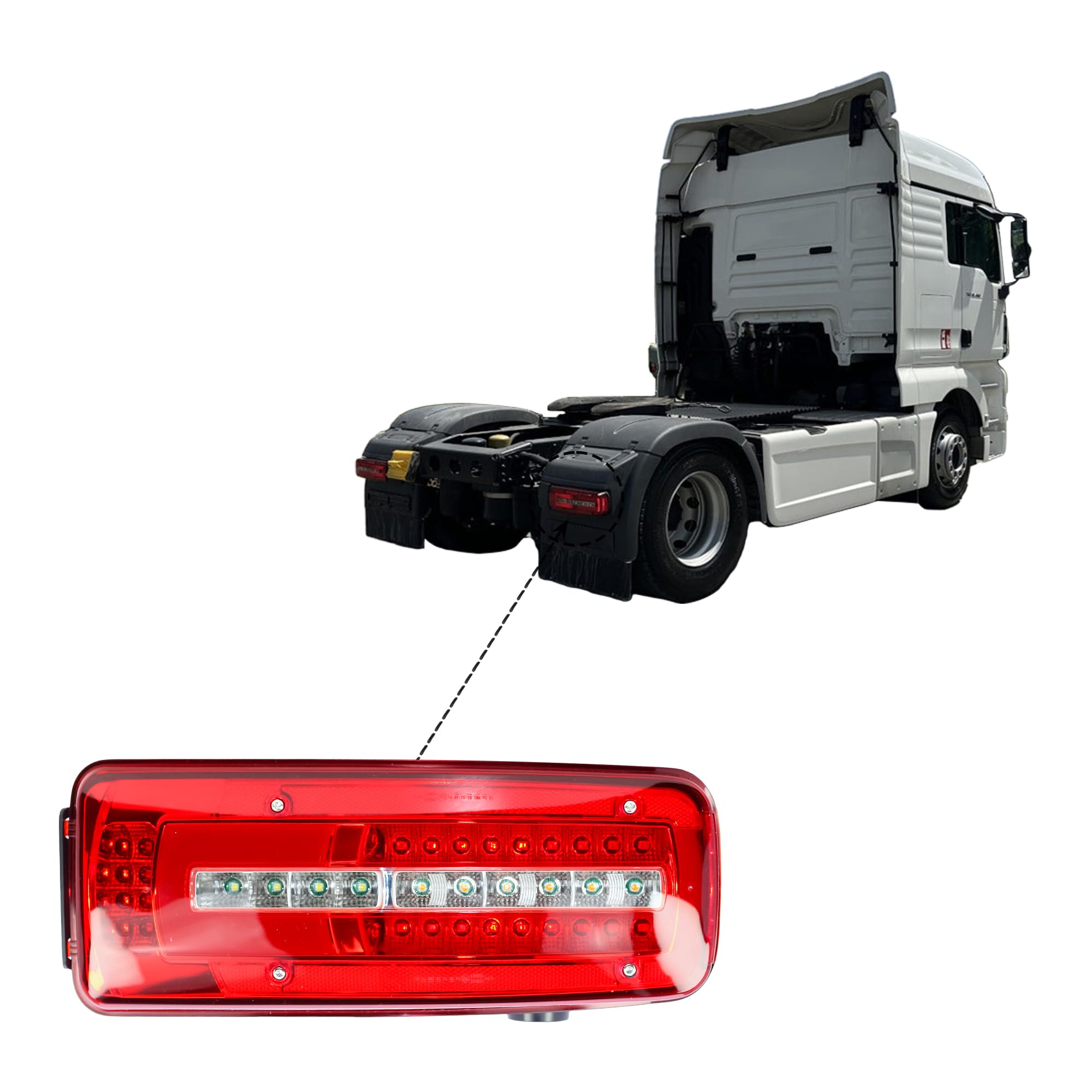 Garantie : fabricant d'un an Coût efficace et fiable : ce sont de nouvelles pièces de rechange. Ils sont conformes à l'équipement d'origine (OE) Feu Arrière Camion Feu Arrière Droit LED + Câble Pour Man TGX Euro 6 Feux Camion D'origine Feu arrière LED camion 24V gauche Particularités du set Côté gauche : avec feu de plaque intégré (plafonnier pour éclairage de plaque) Côté droit : avec avertisseur de recul intégré (signal acoustique lors de la marche arrière) Taille d'origine – idéal en remplacement direct Marquage E – homologué pour la route Boîtier étanche – adapté à un usage... Feu Arrière Carré IZE LED Pour Camion Veilleuse Et Stop 24 Volts Ho Ece R7 Feux De Pare Choc Arriere 24v