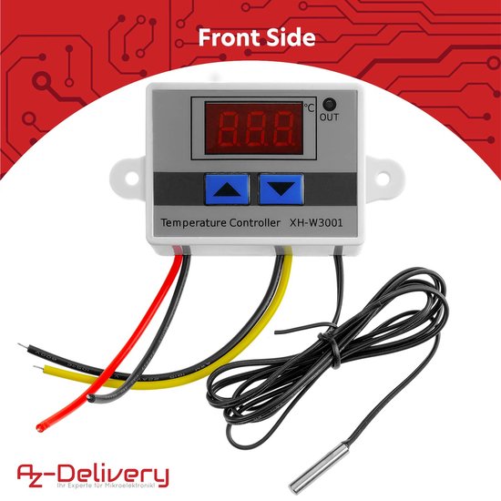 Sonde étanche haute qualité: Ce thermostat digital avec sonde inclut un capteur NTC10K en acier inoxydable de 1 mètre. Il fonctionne selon deux modes : Chauffage : déclenchement si la température mesurée est inférieure à la valeur de consigne Refroidissement : activation si la température dépasse la valeur définie Les valeurs de démarrage et d'arrêt sont programmables, ce qui permet une régulation autonome. 120W) Remarque : Ce produit est un contrôleur température 12V, il ne dispose pas de fonction Wi-Fi ou Bluetooth. Polyvalence d'utilisation: Utilisable en mode chauffage ou refroidissement selon les réglages, ce régulateur température constant s’adapte à de nombreux domaines : incubateurs, armoires électriques, climatisation, humidificateurs, etc. Points : Facile à installer grâce à ses trous de fixation Faible consommation énergétique Réponse rapide et grande fiabilité Compatible avec alimentation DC 12V (non incluse) jusqu’à 10A (max. XH-M452 Contrôleur D'humidité De La Température De Thermostat De Digital De Cc 12v Led Pour Lappareil électrique 220v Maroc 2 Construction robuste et sécurisée: Fabriqué en ABS ignifuge, ce contrôleur température 12V est résistant à la chaleur, aux chocs et à l’usure. Ce thermostat digital est non toxique et respecte les normes environnementales, assurant une longue durée de vie et une sécurité d’utilisation élevée Module de contr?leur de température LED numérique 220, interrupteur de... Régulateur Chauffage Refroidissement 120W XH-W3001 12V Contrôleur Température Sonde Étanche 120W Digital Thermostat Electronique Contrôle précis et intelligent: Le contrôleur de température 12V XH-W3001 offre une précision de régulation de 0,1°C pour une plage de -50 à 110°C. Une lumière de signalisation indique le statut ON/OFF de la sortie. Temperature Controller, DC 12V 120W Digital Temperature Controller Module LED Module XH-W3001 Mini Thermostat Switch With Sensor Sensor Sensor Waterproof Share Utilisation : Ce contrôleur de température est un choix fiable pour toute application nécessitant une régulation thermique précise. Une diode indique le statut de sortie du contrôleur, facilitant la surveillance dans les boîtiers techniques, systèmes CVC ou dispositifs domestiques 60 x 45 x 31 mm Longueur de la sonde : 100 cm Matériaux : Boîtier en plastique ABS ignifuge Sonde en acier inoxydable Fonction : Le XH-W3001 est un thermostat digital 12V conçu pour surveiller et réguler la température dans une plage de -50°C à +110°C. Compatible avec des alimentations DC 12V jusqu’à 10A (120W max)