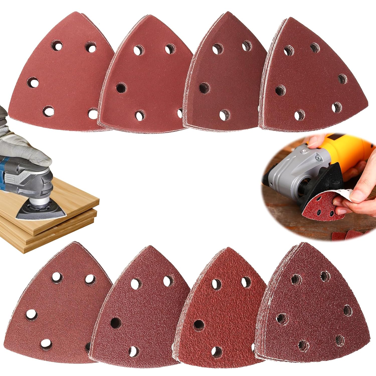 5 Patins ponceuse perforé type B 93 x 230mm bois, métal grain 40 Lot De 100 Patins Abrasifs Triangulaires à Crochet Et Boucle Contenu : 60 disques abrasifs triangulaires sans trou de 80 mm par boîte, 10 pièces chacun pour 40, 60, 80, 120, 180, 240, 400, 600, 800, 1000. Matériau durable Nombreuses utilisations : bon choix pour le ponçage du bois, grain 40, 60, 80 pour le bois brut, grain 120 180 pour le bois général, grain 240, 400, 600, 800, 1000 pour la finition finale du bois, du plâtre, du cuir, de la pierre, du verre et d'autres surfaces