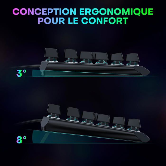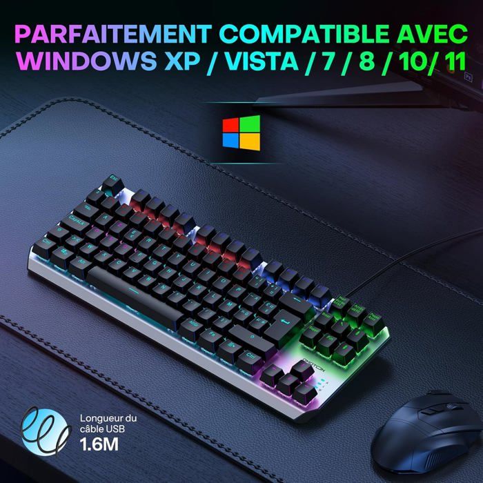 Performance fiable à prix abordable. Achetez MageGee Clavier de jeu mécanique à 75 % avec interrupteur bleu, clavier rétroéclairé à DEL bleue, 87 touches, clavier d'ordinateur filaire TKL compact pour ordinateur portable Windows – Bleu/blanc Découvrez le MageGee MK-BOX, un clavier mécanique 60% compact pensé pour les gamers, les créateurs et les utilisateurs du quotidien à la recherche de performance sans encombrement. Confort de frappe – Design ergonomique avec pieds réglables, idéal pour une utilisation prolongée sans fatigue. Support local & garantie – Assistance en français et garantie fabricant de 1 an incluse. Plug & Play – Connexion USB 2., 0 sans logiciel requis. Grâce à son design ergonomique, ses pieds inclinables et ses touches en double injection, le confort est au rendez-vous même après plusieurs heures d’utilisation. Clavier Gaming Mécanique 87 Touches avec 18 Éclairages Colorés Sans Fil et Filaire Et pour plus de tranquillité, nous offrons un support client local ainsi qu’une garantie constructeur de 1 an. Avec ses 68 touches, il conserve les touches essentielles (flèches, F1–F12 via Fn) tout en libérant de l’espace sur votre bureau. Compatible avec Windows, Mac et Linux, c’est le clavier pratique par excellence. Clavier Gaming Mini 60% MageGee, Rétroéclairage RGB 61 Touches Ultra-Compact, TS91 Ergonomique Étanche avec Sensation Mécanique pour PC, Mac, PS4, Xbox ONE (Blanc) 11,99 € Meilleur prix total 15,98 € livraison incl Clavier Switch Bleu MageGee, Clavier De Jeu Mécanique 60 %, Commutateurs Bleus, Rétroéclairé Bleu Mer, Compact, Portable (noir Gris Switch Bleu Clavier MageGee MK-BOX Branchez-le simplement via USB 2., 0, sans besoin de logiciel.