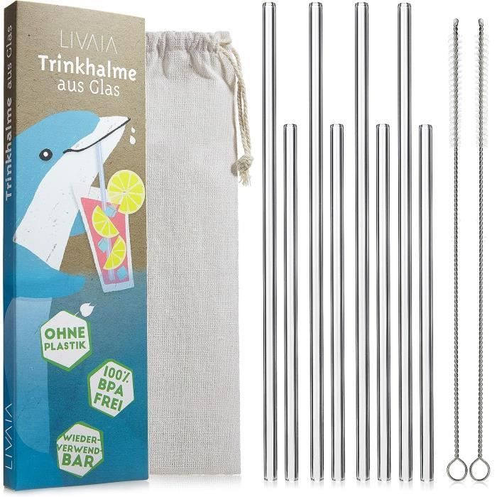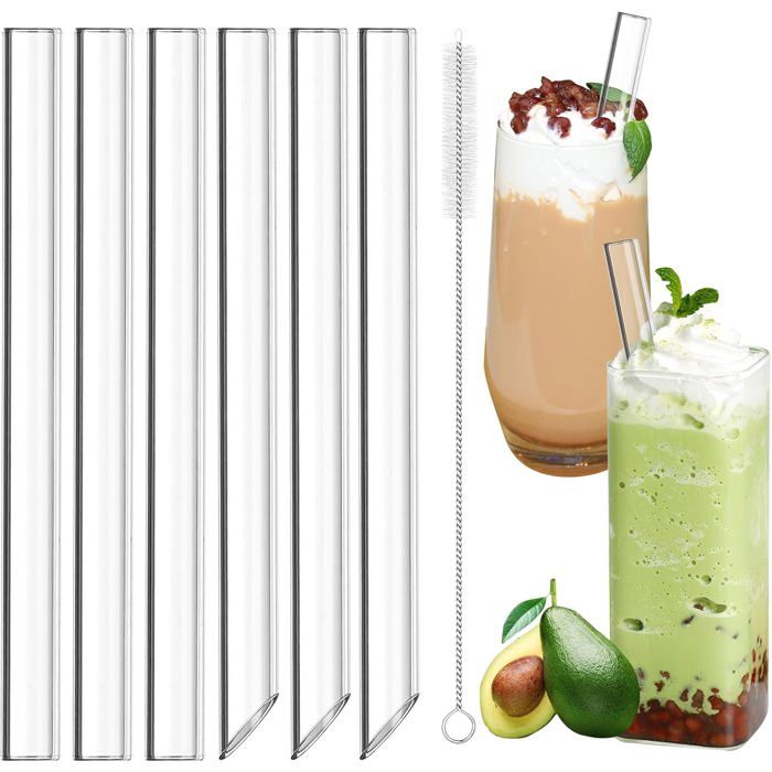 Pailles en verre réutilisables : 2 pailles ordinaires + 2 pailles Boba + 2 étuis à blé + 4 brosses de nettoyage + 1 pochette, pour boissons chaudes et froides, portables pour usage personnel, smoothie Incassable Pailles En Verre Réutilisables (x50) Alla France : Achat, Vente Paille En Verre Ensemble de Pailles en Verre]Le paquet contient 10 pailles en verre et 2 brosses. Les pailles mesurent 200 mm de long, 8 mm de diamètre extérieur et 5 mm de diamètre intérieur Marque, FDGGT. Numéro de modèle, emibolixiguan. Dimensions du produit (L x l x h), 20 x 15 x 1 cm; 60 grammes. Poids de l'article, 60 g
