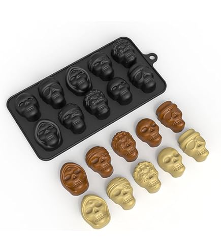 Pour les décorations de cupcakes, la décoration de gâteaux, les cadeaux d'anniversaire pour enfants. Holzsammlung 1 PC 40 Cavité Moules à Chocolat En Silicone Pour Halloween Motif TêTe De Mort Avec 5 Compte-Gouttes Pour Chocolat, Bonbons, GeléE (Couleur aléatoire Holzsammlung 1 PC 40 Cavité Moules à Chocolat En Silicone Pour Halloween Motif TêTe De Mort Avec 5 Compte-Gouttes Pour Chocolat, Bonbons, GeléE(Couleur aléatoire) Parfait pour la fête d'Halloween et la fête de Noël. Et ce moule en silicone tête de mort chocolat est aussi un cadeau parfait pour les enfants, la famille ou les amis. 【Cadeau parfait】 - Les bonbons et le chocolat fabriqués par notre moule en silicone conviennent à Halloween, aux fêtes de Noël et à d'autres fêtes. 40 cavités par plateau. Moules à chocolat - Le plus grand magasin de sélection en ligne [Recom Ils adoreront les friandises au crâne avec une bonne forme de détail. Chaque cavité crânienne : 3,5 ml. Préparez des collations saines avec les enfants. Facile à utiliser et à laver : polyvalents et sûrs pour une utilisation dans les fours, micro-ondes et réfrigérateurs, nos moules en silicone d'Halloween... Moules Alimentaires 40 Cavités Moule à Gâteau Silicone D'Halloween - Mini Têtes De Mort Calavera Moule Bonbons 40 Cavités Permet à plusieurs enfants de jouer ensemble ou à toute la famille pour profiter de la joie des bonbons faits à la main.