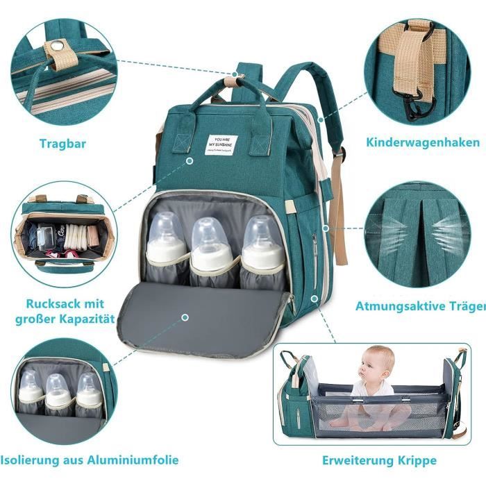 【Tissu Imperméable et Port de Chargement USB】Le sac à langer pour bébé est fabriqué en tissu oxford imperméable avec des fils tissés fins et une fermeture à glissière double sens lisse, résistante aux rayures et durable. 【Sac Isolant pour Biberon et Sac pour Gobelet à Eau】sacs à langer Il y a 2 poches avant zippées de différentes tailles, dont une grande poche zippée avec 3 poches thermiques en aluminium intégrées, qui peuvent efficacement ralentir la perte de chaleur de la bouteille et stocker le chauffe-biberon plus longtemps. Tissu imperméable et port de chargement USB: Le sac à langer pour bébé est fabriqué en tissu oxford imperméable avec des fils tissés fins et une fermeture à glissière double sens lisse, résistante aux rayures et durable Gris(unisexe) Longueur:: 31 cm. Largeur :18cm. Hauteur :42cm. Lit pliant: 70cm. Ouverture extra large conçue pour une organisation facile et un accès rapide. Le sac de bébé a 16 poches, assez pour ranger soigneusement tous les besoins quotidiens de Le sac a langer a dos dispose également d'un port USB et d'un câble de chargement USB amovible qui peut être connecté à une banque d'alimentation et rangé dans la poche intérieure du compartiment principal pour un chargement facile lors de vos déplacements Sac à couches pour bébé, à langer, poussette, maternité, berceau, nouveau-né, maman, Table à Taille dépliée : 74 × 33 cm, peut être dépliée dans le lit pliant pour que le bébé dorme plus confortablement. sac a langer lit Il peut également être utilisé comme table à langer séparée pour changer bébé à tout moment. Sac à Couches Station Change Pop-up Sac À Dos À Langer Bébé En Oxford Imperméable - Sac À Langer Maternité Multifonction Avec Sac à Dos à Langer 35L Lit Pliant Chaque côté a une poche élastique pour un verre d'eau ou des lingettes humides et une poche zippée pour le papier toilette. 🎒 【Sac à Couches Multifonction 35L】 ✨ Nouveau design avec lit pliant intégré ✅ Station de change pop-up + moustiquaire ✅ Port USB externe + câble intégré ✅ 12 poches organisatrices 📦 【Contenu du Pack】 1× Sac à dos imperméable 1× Lit pliant (74×32cm) 1× Matelas à langer 1× Moustiquaire respirante 1× Portefeuille pièces détachées 1× Crochet poussette 3× Poches isolantes aluminium ⚡ 【Fonctions Connectées】 🔌 Port de charge USB externe 📱 Poche anti-rayures pour smartphone 🍼 【Optimisé Bébé & Parents】 3 Poches thermiques Poche couches étanche Porte-gobelets latéraux Compartiment sécurisé pour produits de change 🛡️ 【Caractéristiques Techniques】 | Matériau | Oxford 600D imperméable | | Capacité | 35L | | Poids | 1., 5kg | | Certifications | OEKO-TEX | 💡 【Conseils d'Utilisation】 ① Nettoyer le matelas avec lingette humide ② Accrocher à la poussette via mousqueton 🎁 Idéal pour : Voyages ✈️ Journées en extérieur 🌳 Cadeau de baby-shower 👶 🔍 Mots-clés : sac à langer lit intégré - sac maternité multifonction - changing bag USB - sac voyage bébé - cadeau naissance pratique Le must-have des parents modernes !, 🚀 【Sac à Dos Grande Capacité 35L】Sacs à dos à langer pliant Taille du lit pliant : 70 × 23 cm.