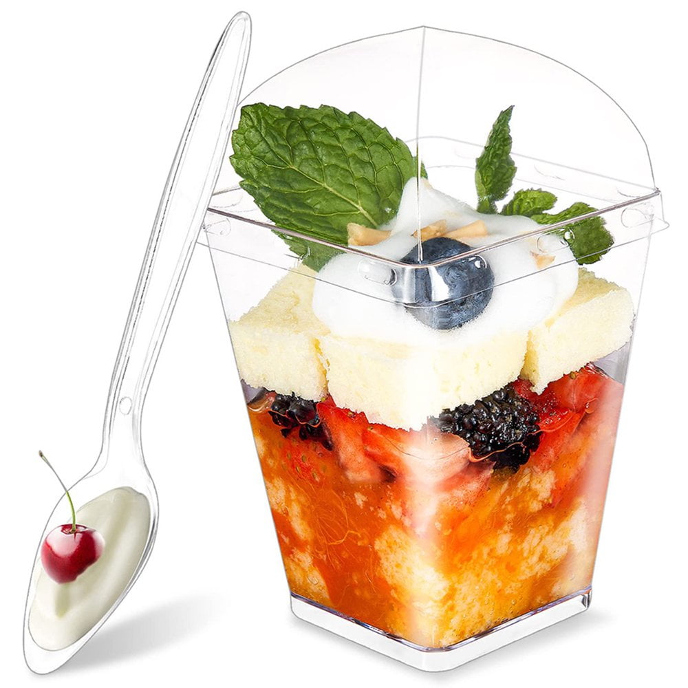 Fonctions : Cet ensemble de 50 tasses à dessert contient des verres ronds en plastique (200 ml) avec cuillère, idéal pour le pudding, la mousse ou le yaourt. Ce lot de 50 tasses à dessert en plastique transparent est parfait pour servir une variété de délices sucrés. Chaque tasse a une capacité de 60 ml, permettant de présenter des desserts tels que mousse, gelée, pudding, crème glacée, yaourt et tiramisu Fabriqués en plastique PS de qualité alimentaire, sans BPA, les gobelets sont solides, réutilisables et empilables pour un rangement peu encombrant. Parfait pour les fêtes, les mariages, la restauration ou les petites créations de desserts au restaurant – un must pour toutes les occasions Également idéal pour un usage personnel à la maison. 50 Pcs Tasses à Dessert avec Couvercles Cuillères 6oz/180ml Mini Pots à Dessert Réutilisables en Plastique Transparent Parfait Apéritif Tasses Carrées Multi-Usages pour Dessert Pudding Mousse Yaourt Collations Idéal pour des applications répétées sans déformation ni casse. Nettoyage et stockage faciles : ces gobelets à dessert en plastique sont faciles à nettoyer - il suffit de les rincer à l'eau chaude savonneuse. Ils peuvent également être empilés et rangés pour économiser de l'espace, ce qui les rend extrêmement pratiques pour un usage quotidien. Design transparent élégant : le design transparent de nos tasses à dessert met parfaitement en valeur les couleurs de vos desserts. 50 pièces gobelets à dessert avec cuillères plastique,verrines Idéal pour présenter des mousses, des puddings ou d'autres desserts avec style et donner un coup de jeune à l'œil. ATANA 40 Petits Bols en Plastique Dur Transparent (150l) - Coupes à...