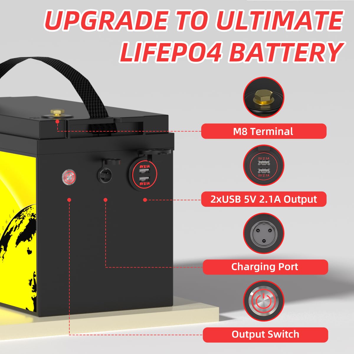 Longue durée de vie : fabriquée avec des cellules LiFePO4 de qualité supérieure, cette batterie prend en charge plus de 3000 cycles à 80 % de profondeur de décharge et conserve une capacité supérieure à 80 %. Légères mais Puissantes]Les Batteries Lithium 12V 100Ah de Power Queen ne pèsent que 10 kg, soit un tiers moins lourdes des batteries au plomb 12V 100Ah Description: Découvrez une énergie fiable et efficace avec notre batterie au lithium LiFePO4 12,8 V 100 Ah conçue pour une large gamme d'applications d'alimentation indépendantes du réseau et mobiles. Large application - Performance fiable à tout moment : idéale pour les camping-cars, le camping, la navigation, l'alimentation domestique, les moteurs de trolling et les systèmes solaires. Elle offre une tension de sortie stable, une faible auto-décharge et une puissance constante - même après un stockage prolongé. Protection BMS avancée - Cellule de grade A : la batterie 100 Ah est fabriquée avec des cellules phosphate de fer au lithium de qualité automobile, qui offrent une densité énergétique plus élevée, des performances plus stables et une plus grande performance. Elle dispose également d'un BMS intégré pour protéger la batterie contre la surcharge, la surchauffe, la décharge excessive, la surintensité, la basse température et les courts-circuits. Batterie Lifepo4 12v 100ah avec cellules Grade A et BS Parfait Teps de Cycle Bas jusqu'à 10000... Assurez-vous que toutes les batteries au lithium correspondent en termes de capacité, de tension et d'autres paramètres. Batterie au Lithium EXTRAPOWER 12V 100Ah LiFePO4 pour Camping-car Dc House 12v 100ah Battery Timeusb Batterie Lithium 12V 100Ah,Batterie LiFePO4 Rechargeable,BMS 100A Intégré,15000+ Cycles Profonds,1280Wh LiFePO4 Pour Bateau Hors Réseau Caravanes Système Solaire 12v 100ah Lifepo4 Avec une durée de vie 5 à 10 fois plus longue que AGM ou SLA, c'est une solution rentable pour le stockage d'énergie à long terme. En cas de grandes différences, il peut y avoir une surcharge ou une décharge excessive des batteries individuelles, ce qui affecte les performances et la durée de vie et peut même causer des problèmes de sécurité. Remarque 2 : compensation de tension. Avant la commutation en série de 24 V/36 V/48 V, il est recommandé de charger/décharger chaque groupe de batteries individuellement à la même tension et de le laisser reposer pendant plus de 2 heures. Restez confiant et concentré sur chaque excursion de pêche sans vous soucier d'une perte de courant inattendue.