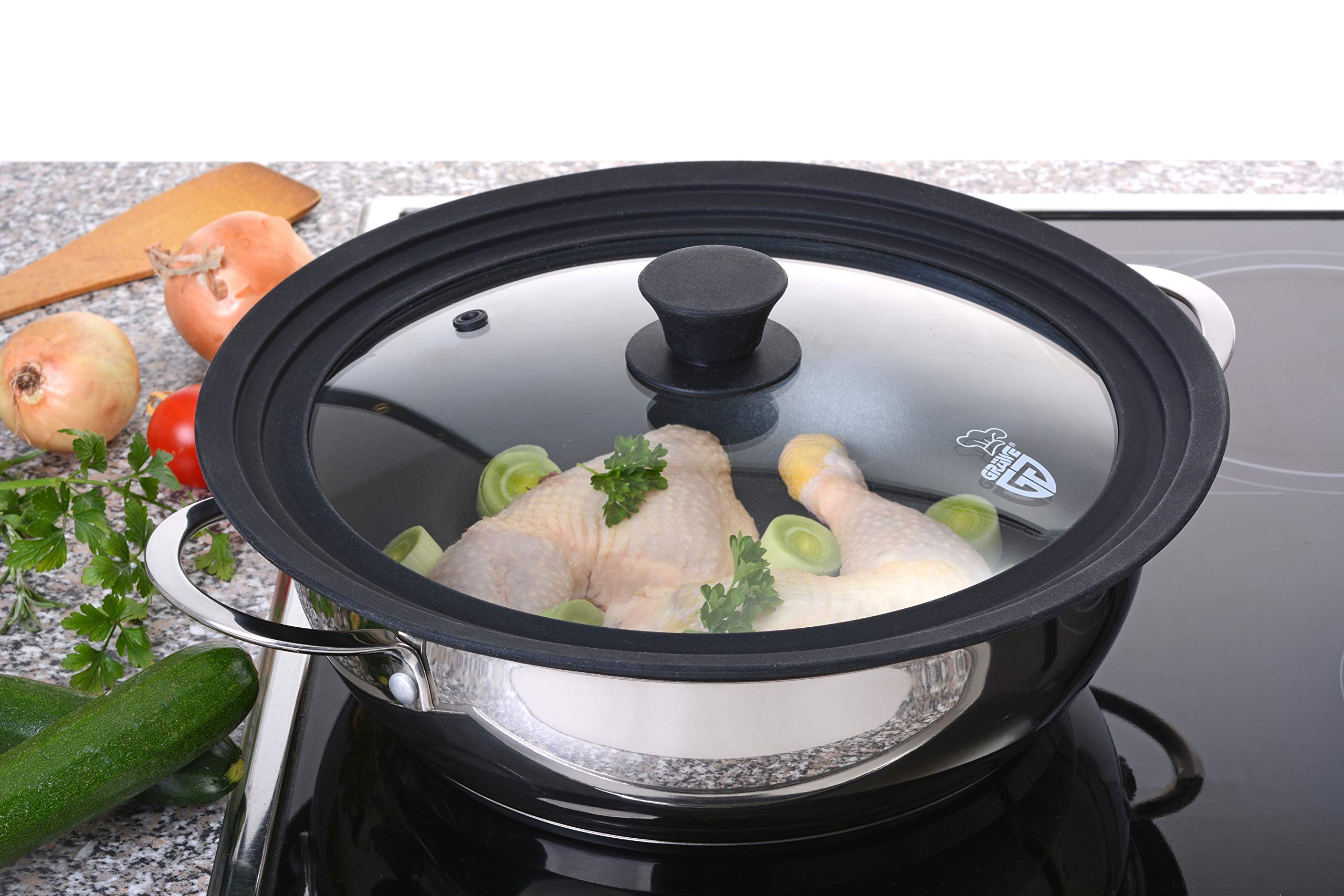 Couvercle de qualit sup rieure avec anneau en acier inoxydable le couvercle en verre GRÄWE de 20 cm de diam tre est parfait pour mijoter, cuire et r tir des aliments Les articles ou décorations ne sont pas inclus dans la livraison. Couvercle Pour Poêle En Fer GRÄWE Couvercle En Verre De 31 C Pour Poêles En Fer Accessoire Poêle 28 Cm Verre Trempé Couvercle en verre GRÄWE Attention : ce couvercle en verre est un accessoire de notre poêle en fer GRÄWE de 28 cm avec manche à crochet ou poêle de service. Convient pour les poêles de service de 28 cm de haut et plates B00CBUIONC & B001M0UQHY & B001M0UQH4 ainsi qu'une poêle en fer avec manche à crochet de 28 cm de haut et plate ASIN B00IA2AREE & B002ZC0QFU & B001M0ZFJI & B001M0XQWQ Le couvercle en verre GRÄWE avec anneau en acier inoxydable a un diamètre de 32 cm et une sortie de vapeur pour une régulation efficace de la vapeur. Il est résistant à la chaleur jusqu'à environ 180 °C, ce qui le rend idéal pour la cuisson et le maintien au chaud des aliments sur la cuisinière GRÄWE Glasdeckel mit Silikonknauf, 30 cm Le couvercle s'adapte aux articles suivants : ASIN B001M0XQWQ Poêle en fer avec manche à crochet 28 cm ASIN B002ZC0QFU Poêle en fer de 28 cm de haut avec manche à crochet ASIN B001M0ZFJI Poêle en fer 28 cm Poêle de service 28 cm / ASIN B001M0UQH4., ASIN B001M0UQHY Poêle de service de 28 cm de haut ASIN B00CBUIONC Poêle de service 28 cm Contenu de l'emballage : - 1 couvercle en verre pour poêle en fer de 28 cm. Combinaison élégante en verre/acier inoxydable Le bord en acier inoxydable spécialement formé augmente considérablement le volume de la pièce sous le verre.