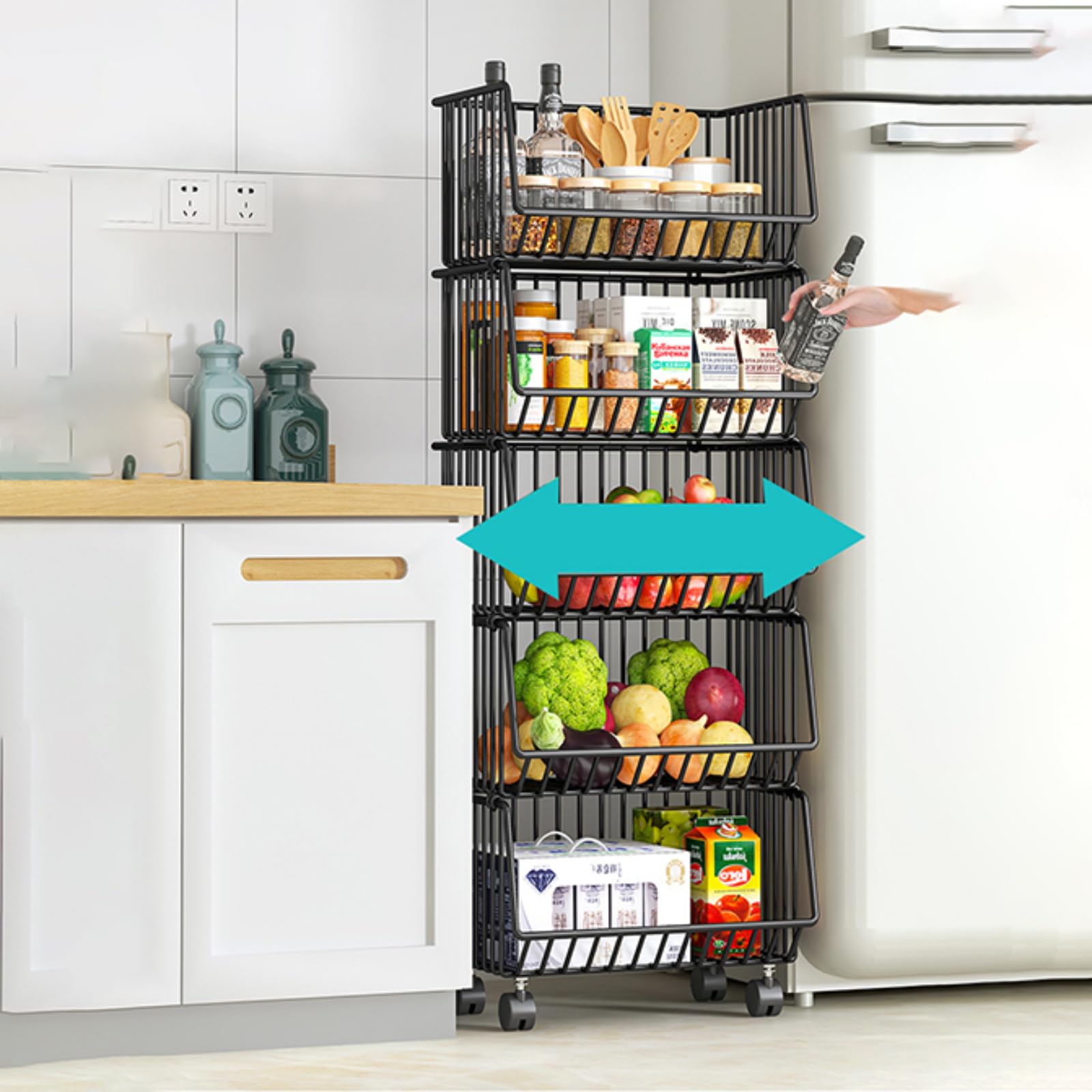 Meuble Range Bouteille Panier De Rangement De Fruits Et Légumes à 4 Niveaux, Panier Amovible, Avec Roulettes, Support De Chariot Utilitaire Pour Cuisine, Garde-Manger, Salle De Bain Panier De Fruits Et Legumes Panier de rangement de légumes réglable à 4 niveaux, panier de rangement amovible avec roulettes, cadre de rangement pour uits et légumes, étagère de rangement pour cuisine, garde-manger Amovible ou fixe : les paniers à fruits de cuisine disposent de 4 roues de haute qualité (2 verrouillables) et de 4 pieds antidérapants. Les roues pivotantes à... 1 JAQ Tour de rangement pour légumes, étagères rotatives en métal à 4