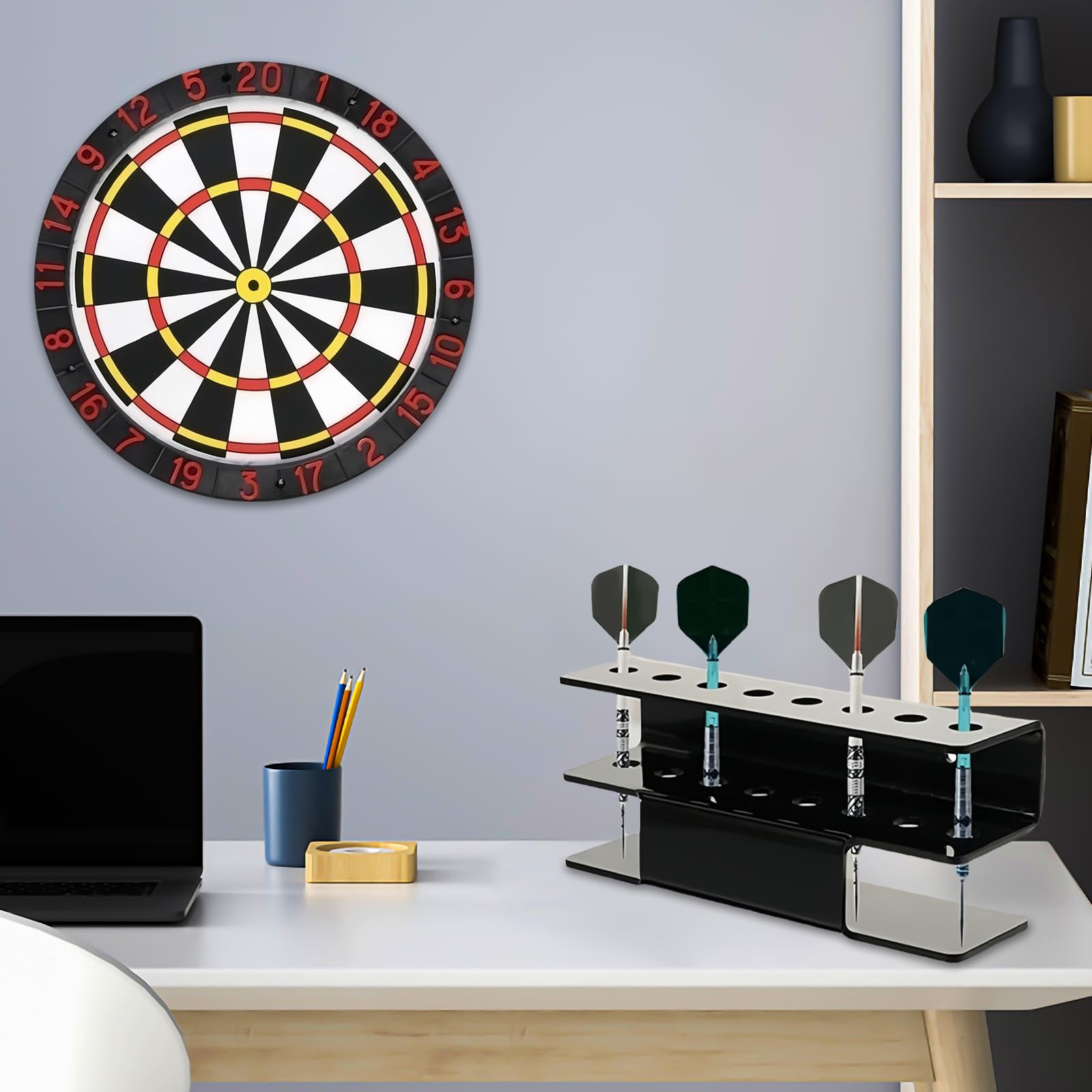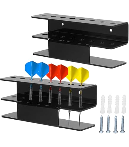 Avec son design noir élégant et compact, le support flechette mural s’intègre parfaitement dans tout type d’intérieur. Il peut accueillir jusqu'à 16 fléchettes, offrant une solution de rangement sécurisée et ordonnée. Fabriqué en verre acrylique de haute qualité, le support flechette mural est robuste et conçu pour une utilisation durable. Polyvalent et esthétique: Notre support flechette mural convient à tous types de fléchettes. Accès facile pour un meilleur jeu: Les ouvertures inclinées du support flechette mural permettent de saisir les fléchettes rapidement. Support 16 Fléchettes Acier Souples Support Flechette,Support Fléchettes,Support Cible Fléchettes,Support D Jeu Flechette Organisation optimale pour vos fléchettes: Avec notre support flechette mural, vous gardez vos fléchettes bien rangées et visibles. Vous gagnez du temps pendant vos parties et restez concentré sans chercher vos accessoires. L'installation est rapide et facile : Fixez simplement le support flechette mural avec les vis et chevilles fournies. Quelques vis ou clous suffisent pour installer solidement votre support flechette mural dans un garage, une salle de jeux ou un bar. Acheter Pistolet X-Shot Fury 4 avec 16 fléchettes Zuru 36377 | Juguetilandia Support Flechette Mural, En Acrylique Noir pour 16 Fléchettes, Support Fléchettes Compatible Avec Fléchettes Acier Et Souples, Support de Fléchettes Mural Idéal pour Salle de Jeu, Bureau, 2 Pièces Caractéristiques: Support flechette mural – rangement pratique et élégant pour vos fléchettes Organisez votre collection avec style grâce à ce support flechette mural en acrylique noir. En quelques minutes, le support de fléchettes mural est solidement fixé au mur de votre salle de jeu, garage, salon ou bureau. Que vous utilisiez des fléchettes en acier ou souples, elles sont stockées en toute sécurité et restent accessibles à tout moment. Que vous utilisiez des fléchettes en acier ou des fléchettes souples, vos accessoires restent bien en place et toujours à portée de main. Cercle mural - Cercle mural - Flèche fléchette vole vers le jeu de fléchettes - noir Nos top 10 des Support Flechette Mural en France - Décembre 2025 Et pour ceux qui possèdent plusieurs jeux, deux support fléchettes permettent de doubler la capacité – l’idéal pour les passionnés de fléchettes.
