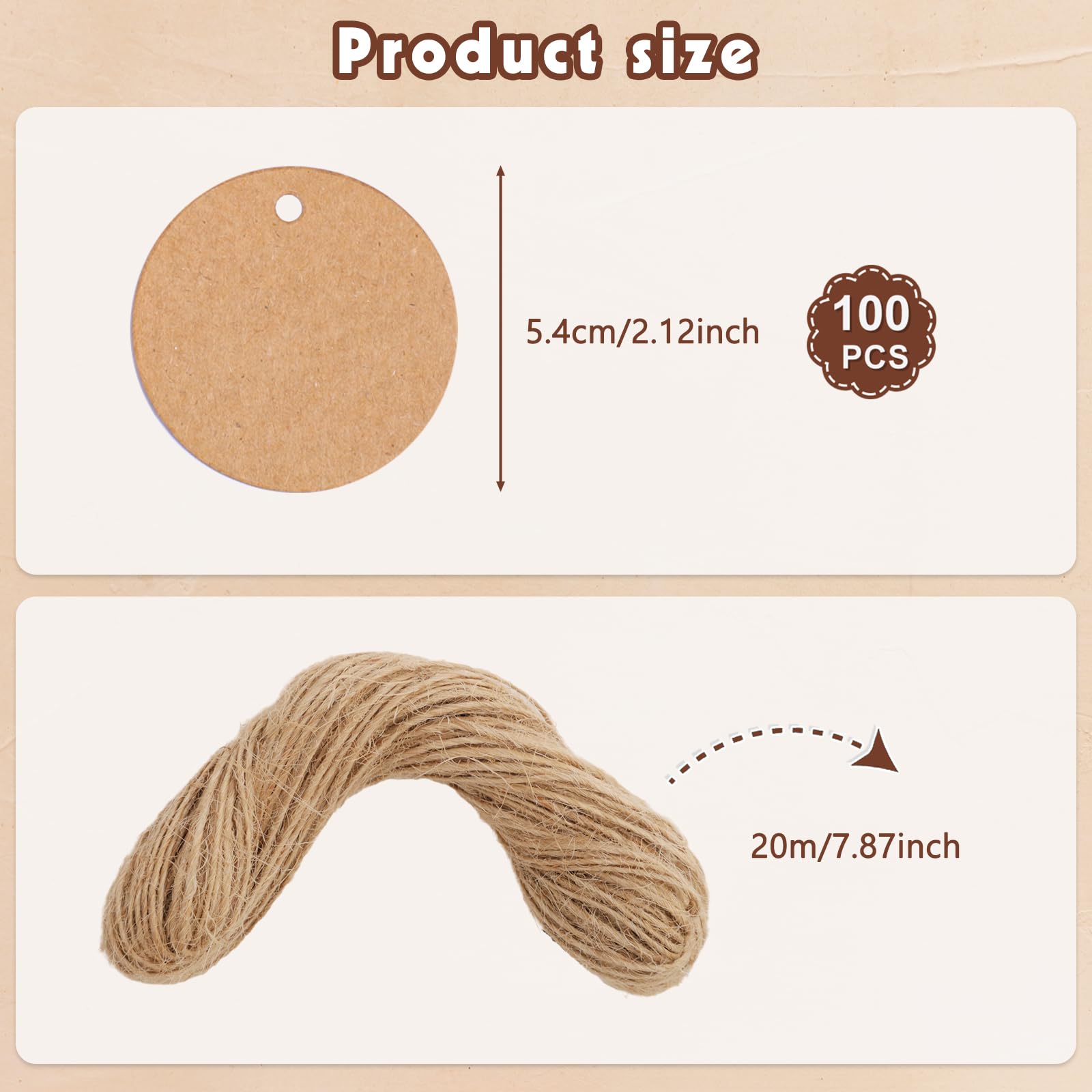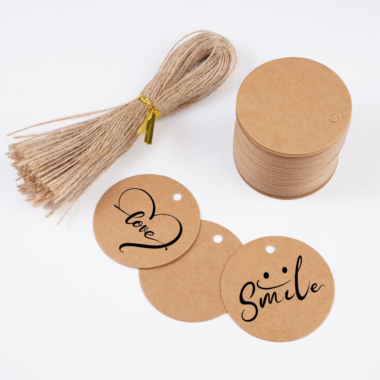 Festival et Application Quotidienne : Vous pouvez coller les étiquettes en papier kraft sur les boîtes cadeaux pour ajouter un sens de la cérémonie, les attacher aux bouteilles de vin ou aux bouquets pour améliorer l'atmosphère. Contenu de l'ensemble : Vous recevrez 100 pièces rondes de 5cm (étiquettes en papier kraft) et 100 pièces de 25cm de corde de jute, la quantité est suffisante et le ratio raisonnable, assez pour répondre à vos besoins quotidiens. À suspendre : Nos (étiquettes en papier kraft) ont des trous préperforés avec de la ficelle libre, facile à suspendre sur des étiquettes, des signets ou des décorations. Acheter 100 pièces étiquette cadeau avec 20 m de ficelle de jute ronde/cœur/rectangle en forme de conception vierge bricolage épais mariage Thanksgiving noël artisanat étiquette faveurs de fête Papier Kraft épais et Durable : Ces étiquettes en papier kraft sont fabriquées à partir de papier kraft de haute qualité, la surface du papier est lisse et ne s'efface pas, l'écriture est douce. Naturl t Rustiqu : Fabriqués à partir d papir kraft importé d haut qualité 350g, cs étiqutts dégagnt un charm naturl t rustiqu, parfait pour ajoutr un touch d'éléganc vintag à vos produits ou cadaux Ficelle Noire Carte Kraft Étiquette De Papier,100 PCS Papier Kraft Etiquettes Rondes + 100 PCS Rectangle Etiquette-cadeaux Avec 20 Mètres De Ficelle Jute Pour Mariage Cadeau De Noël Art Artisanat Décoration De Emballage : Contient 50 étiquettes cadeaux de Noël et 50 ficelles de jute. Les étiquettes sont disponibles en 10 motifs et designs différents, avec 5 de chaque