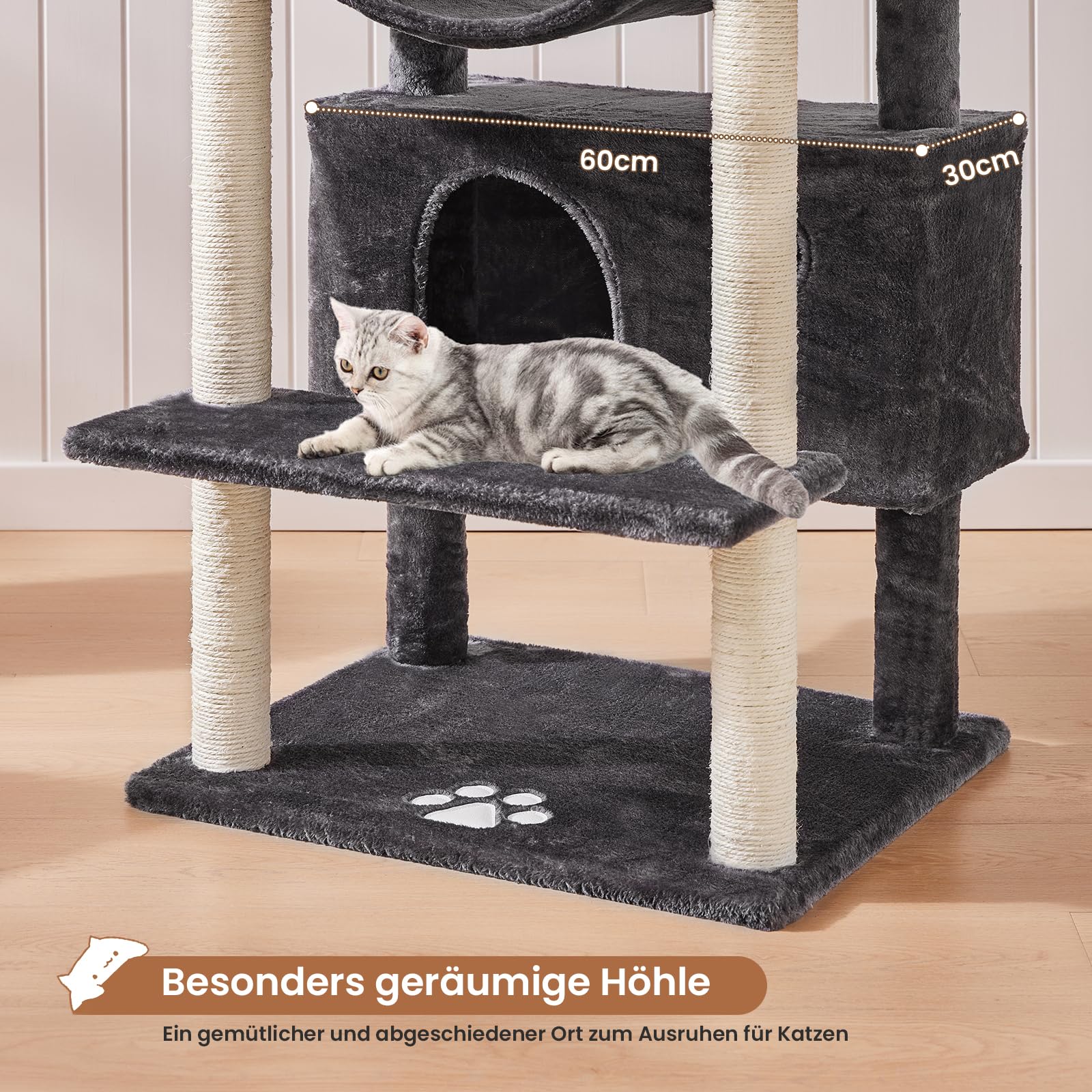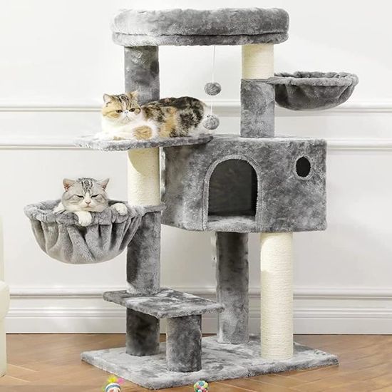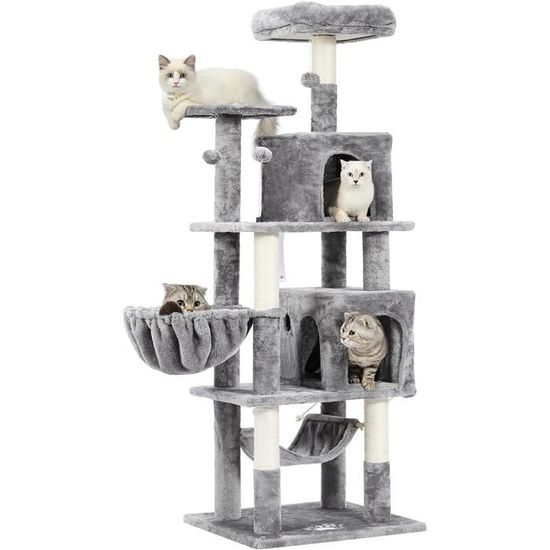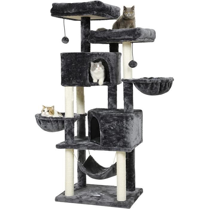 Achetez MSmask Grand arbre à chat stable en L avec 2 plateformes, 2 niches pour chats, hamac, colonnes en sisal, arbre d'escalade à plusieurs étages pour chats (gris foncé, 173 cm Que les chats veulent grimper, se cacher, faire une sieste ou observer leur environnement, cet arbre à chat répond à leurs instincts Arbre Chat L 150cm Plateformes Niches Hamac Sisal Stable MSmask - Arbre à Chat Stable à Plusieurs Niveaux - Pour Grands Arbres à Chat Description du produit MSmask Grand arbre à chat stable en L avec plateformes, niches, hamac, colonnes en sisal, arbre d'escalade à plusieurs étages pour chats Mode d'emploi Gardez-le à l'intérieur Facile à assembler : des instructions de montage détaillées (français non garanti) ainsi que tous les outils nécessaires sont fournis pour que vous puissiez assembler l'arbre à chat sans effort. MSmask est à votre disposition à tout moment Dimensions du produit. 50L x 50l x 175H centimètres · Usages spécifiques pour le produit. Centre d'activité pour chat · Marque. MSmask · Couleur. gris clair MSmask Arbre à Chat XXL Hauteur 194 cm, Centre d'activité Géant Grâce aux plateformes avec bords rembourrés, grottes, hamac, colonnes en sisal et balles en peluche, votre chat peut jouer, se reposer et faire ses griffes à son guise. Le hamac est idéal pour un grand chat ou deux chatons Un paradis pour les chats : l'arbre à chat à plusieurs niveaux avec des niveaux appropriés est parfait pour l'escalade.