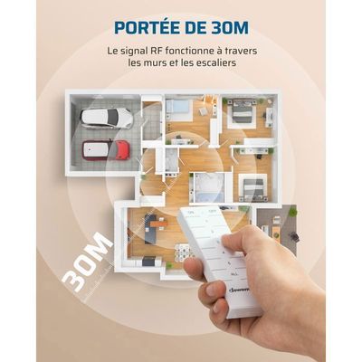 Fonction auto-apprentissage : le kit de prises télécommandées est préprogrammé, vous n'avez pas besoin d'apprendre ou de configurer le système par vous-même, il suffit de brancher la prise et d'appuyer sur le bouton de la télécommande pour contrôler à distance les appareils appropriés. Plug & Play : l'installation de la prise est très simple et ne nécessite aucun outil. Pack 2 télécommandes 1 prise. Portée 30m, traverse murs. Capacité 16A/3680W. Pré-appariée, prête à l'emploi. Télécommande fixable au mur ou portable Prise Telecommande Sans Fil 2300W 230V Prise Télécommandée De Gamme 30M... Les prises télécommandées peuvent réduire la consommation d'énergie des appareils en mode veille, ce qui permet d'économiser sur les coûts d'électricité. Prise sans fil PROFILE QNECT - set 3 pièces - avec télécommande - max 3680W - blanche Télécommande portable : la télécommande est maniable et facile à transporter. Si vous ne voulez pas vous lever pour allumer ou éteindre l'interrupteur, vous pouvez facilement contrôler l'allumage et l'extinction des prises via la télécommande. Prises Connectées DEWENWILS Prise Télécommandée Programmable Avec 5 Prises Et 2 Télécommandes Pré-appariés, 10 A 2300 W, Prise Télécommande Sans Fil Avec Portée De 30 M Dans La Zone Ouverte, Certifié CE Même les personnes âgées peuvent facilement le maîtriser. 1 Une conception réfléchie 2 meilleure qualité 3 économie d'énergie Convient à tous les scénarios dans la maison