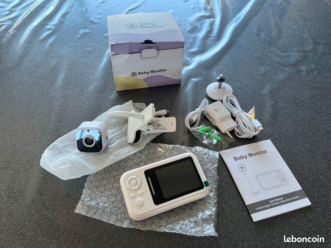 La détection des pleurs vous alerte lorsque votre bébé bouge, et la communication bidirectionnelle vous permet de le rassurer à distance. Grâce à leur fonctionnement sans connexion internet, ces appareils offrent une solution fiable et sécurisée pour surveiller votre bébé sans craindre des interruptions liées à la qualité du réseau Supports Flexibles Doubles, Pas d'Achat Supplémentaire Nécessaire : Profitez d'une polyvalence ultime avec un clip de lit sécurisé et un support indépendant inclus. Contenu du Paquet et Garantie Tranquillité d'Esprit : Inclus 1x Caméra, 1x Moniteur, 2x Support pour Babyphone Camera, 1x Adaptateur, 1x Cordon d'Alimentation, 1x Câble USB-C, 1x 32G Carte Mémoire et 1x Manuel - tout ce dont vous avez besoin pour commencer. Notre équipe de support amicale est disponible 24/7 pour répondre à toutes vos questions et vous assurer que vous êtes entièrement satisfait de votre achat Il est garanti 2 ans pour une tranquillité d'esprit totale. Gardez votre petit sous surveillance à l'heure du coucher, de la sieste ou du jeu, où que vous soyez Babyphone Camera et Detecteur de Mouvement Capturez des photos ou enregistrez des vidéos pour garder des souvenirs inoubliables et vérifiez facilement que votre bébé est en sécurité Il n'est pas nécessaire d'acheter un autre support. La caméra haute résolution offre une douce lumière infrarouge qui ne dérangera pas le sommeil de votre bébé, tandis que le zoom numérique 4X vous permet de vous concentrer sur chaque petit geste. Vision nocturne : indispensable pour la surveillance nocturne (recherchez une visibilité de plus de 4,5 mètres); Audio bidirectionnel : apaisez votre bébé avec... Babyphone Camera avec Clip et Support pour Lit, 1080P Camera Bebe Surveillance sans WiFi, Vision Nocturne, Audio Bidirectionnel, Détection des Pleurs, Carte 32G, Facile à Installer, Cadeau Naissance - Photo, audio Les parents peuvent se détendre en sachant qu'il n'y a ni déconnexions ni coûts cachés