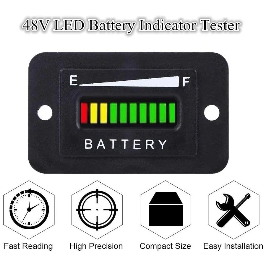 ▶ Courant de fonctionnement :≥ 20mA ; Température de fonctionnement : de -15 à +70 ▶ Certification CE RoHS Ce compteur d'état de la batterie convient aux appareils portables, aux voiturettes de golf, aux véhicules de plaisance, aux bateaux, aux clubs car, aux motos, aux camions, aux véhicules, aux jet-skis, aux chariots élévateurs à fourche, aux voitures à auto-équilibre et à bien d'autres choses encore Yooreal YR-BI027 12V 24V 36V 48V Jauge de carburant pour batterie, indicateur de niveau de batterie, batterie au plomb applicable, affichage à écran unique et multiple, moniteur de charge et de décharge de la batterie, facile à installer, taux d'étanchéité IP65., 1 indicateur de niveau de carburant de la batterie --- 5 barres LED pour indiquer la capacité actuelle de la batterie. 【Affichage LED】: 10 barres LED disponibles avec chaque 10% de puissance de la batterie pour indiquer l'état actuel de la batterie par 3 couleurs, qui par 2 types de méthodes d'affichage: simple (éclaire uniquement la barre correspondante de la puissance de la batterie) et multiple (éclaircit les barres du premier au correspondant de la puissance de la batterie) . 【3Connexion du produit】: Vous pouvez choisir de le connecter directement à la batterie ou plus l'interrupteur à clé par positif (+) et négatif (-), l'affichage normal dépendra de la connexion finale de la borne C avec le positif (+). 【État du niveau de la batterie】: Cet appareil vous aidera à connaître la charge restante de votre batterie et le moment où la recharger à l'avance, ainsi qu'à obtenir une lecture précise de l'état de décharge. ▶Les barres LED seront déclinées une par une toutes les 155s si la batterie se décharge. Batterie Chariot Elévateur - 6PZS750 - 48 V - 750 Ah | Batteries Hexagone 4 Spécifications▶ Taille du produit 0,17 x 0,11 x 0,089 ft, poids : 0,079 lb. ▶3 types de couleurs pour les barres LED (1 rouge, 2 jaunes et 7 vertes)▶Bar par barre afficher la capacité restante de la batterie. (par exemple, rappel de charge, alerte de batterie faible)▶Il existe une fonction de sortie de tension lorsque vous connectez toutes les prises (positives, négatives, C et R)▶Si la capacité de la batterie est inférieure à 10 %, la tension de sortie est de 0 V ; si la capacité de la batterie est supérieure à 10 %, la tension de sortie est de 5 V. Batterie Chariot Elévateur - 6PZS750 - 48 V - 750 Ah | Batteries Hexagone Moniteur Charge Décharge IP65 Yooreal Jauge De Capacité De Batterie 12 V/24 V étanche IP65 Indicateur Testeur Batterie 18650 (connectez les prises positives, négatives et C)3 Fonction de sortie de tension --- Pour envoyer un signal à un périphérique externe pour être un poste fonction ra.