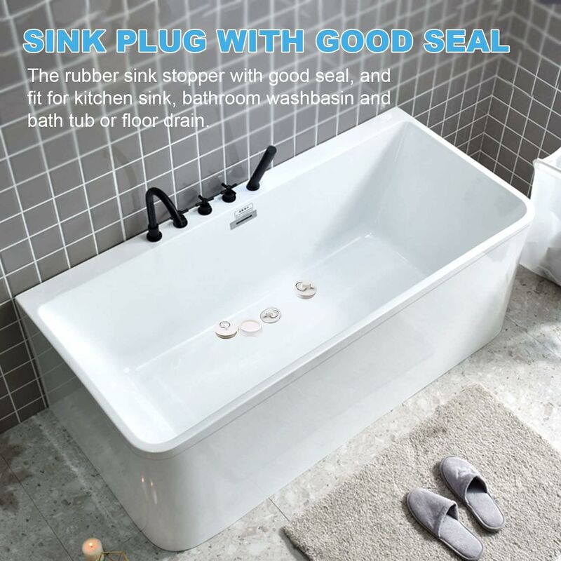 Le bouchon de vidange convient aux robinets de 41,5 à 45 mm de diamètre maximum et a une hauteur de 11,7 mm. Le couvercle d'évier est un accessoire et ne peut pas être installé complètement sur le robinet d'origine La méthode de mesure consiste à s'assurer que le diamètre du siphon de sol est légèrement supérieur de 1 à 2 mm au diamètre inférieur du bouchon. Bouchon Caoutchouc Noir Uxcell Lot De 2 Bouchons D'évier En Caoutchouc Blanc 41,5-45 Mm Avec Anneau De Suspension Pour Baignoire, Cuisine Et Salle De Bain Bouchon De Vidange Noir Matériaux de qualité supérieure : Le bouchon de vidange est fabriqué en caoutchouc de haute qualité, durable, non toxique et inodore. Convient aux salles de bains, cuisines, éviers inclinés, lavabos, canalisations, baignoires, etc. Pas d'inquiétude : mesurez précisément la taille de votre emplacement et achetez la fiche correspondante, vous n'aurez donc pas à vous soucier des fiches supplémentaires qui pourraient provoquer des déchets et une pollution de l'environnement. EAU REMPLACEMENT DE Crépine D'évier Couler Bouchon Vidange Cheveu EUR... Lot de 2 bouchons de vidange universels en caoutchouc pour baignoire et évier de cuisine - 45 mm - En métal chromé - Avec chaîne - Pour douche, évier en céramique, caravane Taille applicable : Diamètre du cône : 45,5 mm à 40 mm (de haut en bas). Utilisations multiples : Ce bouchon de canalisation convient à la plupart des endroits. Bonne étanchéité : Le bouchon de vidange empêche la vaisselle et les objets inutiles de tomber dans le drain et maintient l'eau dans la baignoire ou l'évier.