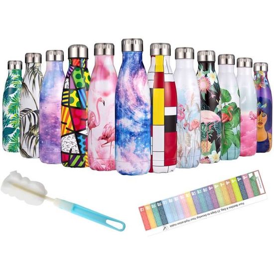 BOIRE PLUS D'EAU: L'eau est une nécessité pour chaque créature vivante; en t'incluant! Gourde isotherme en acier inoxydable de 500ML, pour conserver de l'eau chaude ou oide, contenant isolé sous vide, idéal pour le Sport, nouvelle collection Plusieurs modèles à la mode et populaires parmi lesquels vous pouvez choisir Méticuleusement conçu pour garder les boissons froides pendant 24 heures ou chaudes pendant 12 heures! ISOLATION ÉTONNANTE: La construction de la bouteille d'eau en acier inoxydable à double paroi de qualité supérieure est en acier inoxydable de 4 mm avec un espace de vide de 4 mm pour une isolation thermique supérieure de la bouteille d'eau. Continuez le programme pour une bonne hydratation et restez en bonne santé. La sécurité est une priorité absolue, car cette bouteille d'eau est fabriquée avec des plastiques non toxiques sans BPA. Offrez-vous une hydratation stylée, durable et saine avec cette Gourde Acier Inoxydable Noire 500ml. Sa finition mate et son format compact en font un accessoire indispensable. Isotherme, réutilisable et sans BPA, elle conserve vos boissons à la température idéale toute la journée Buvez 4 bouteilles par jour pour une bonne hydratation et rester en bonne santé ! 500ml Bouteille d'eau Sport Gourde Inox Isotherme Sans BPA Impression A: Blanc Fleurs - Sport Gourde Inox 500ml, Bouteille Isotherme Reutilisable, Thermos en Acier Inoxydable Isolant sous Vide Sans Bpa, Garde Froid 24H ou Chaud 12H, Anti- Condensation et Anti-Fuites, Facile à Nettoyer | Votre wishlist sur Remplissez votre bouteille d'eau en acier inoxydable BEI & HONG Hydration avec de la bonne eau et buvez 4 bouteilles par jour pendant 21 jours. Nos fonctions : sans BPA, Étanches Manteau de revêtement durable, acier inoxydable 304 Garder au chaud pendant 12 heures et garder au froid pendant 1 jour Avec brosse de nettoyage et autocollants de motivation