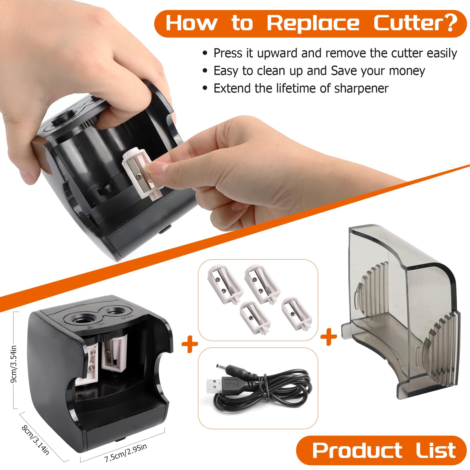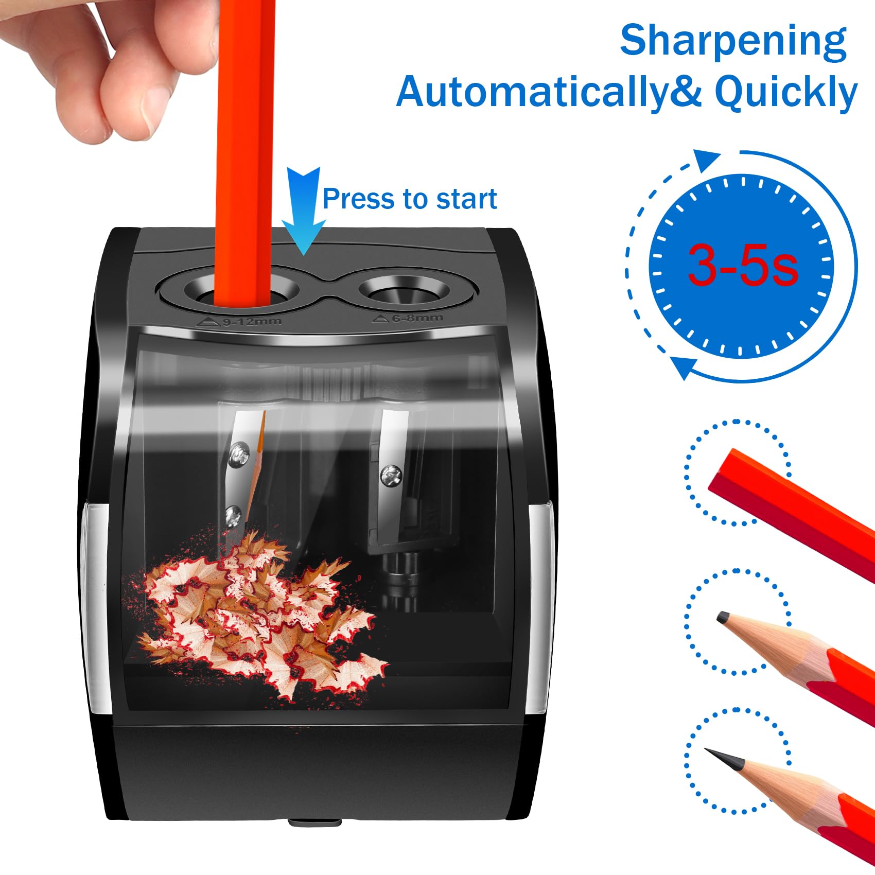 【Alimentation Flexible pour Enfants】Notre Taille-crayon électrique Enfants fonctionne via câble USB ou 4 piles AA (non fournies). Idéal pour étudiants, artistes, architectes et bureaux. Fonctionnement à alimentation multiple: Notre taille crayon electrique professionnel peut être alimenté par un câble USB ou 4 piles AA (non incluses), pas besoin de s'inquiéter de manquer d'énergie cobee Taille crayon onotrou, 10pcs taille crayon en alliage d'aluiniu ini taille crayon... Pour des performances optimales, privilégiez l'alimentation USB et soyez toujours opérationnel. Taille-crayon électrique multifonction avec aspira... – Grandado Prévention des blessures garantie, même en cas de mauvaise manipulation. 【Nettoyage Simplifié & Polyvalence】Le bac à copeaux transparent de ce Electric Taille-Crayon Automatique Professionnel permet une visibilité et un vidage faciles. Taille Crayon électrique Manuel Taille-crayon Autoatique Haute Vitesse, Alienté Par Piles, Idéal Pour Les Enfants, Les Taille-crayon Professionnel Avec Lames Rechange Quatre lames de rechange incluses pour une longévité accrue ! 【Conception Professionnelle à Double Ouverture】Notre Taille Crayon Electrique professionnel propose deux diamètres de trous (6-8 mm et 9-12 mm). Ce Pencil Sharpener Professionnel est compatible avec tous les crayons : de couleur, à dessin, HB, épais, fins, triangulaires, hexagonaux ou ronds.